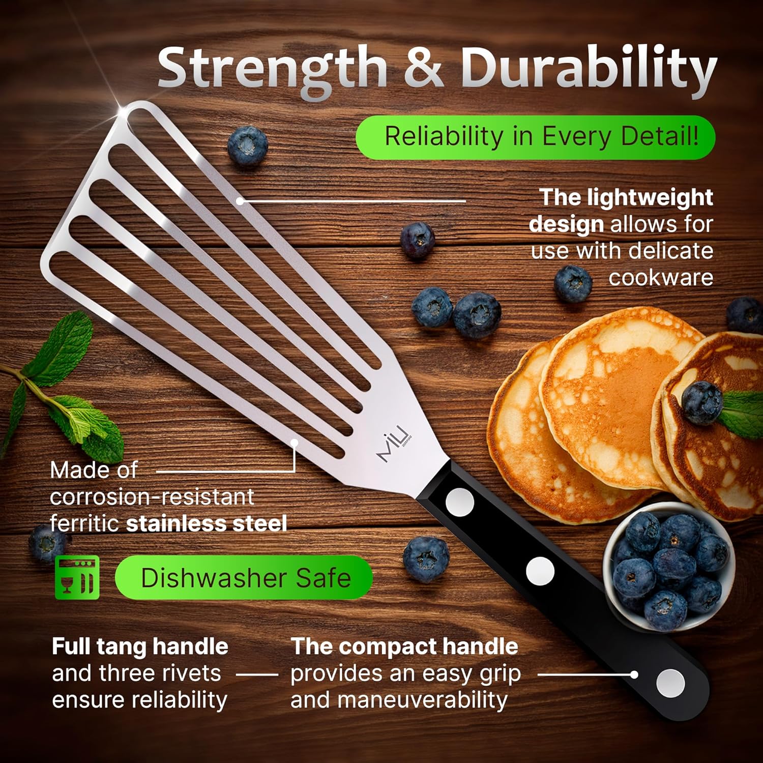 - Multi-Functional β suitable for most applications that require a spatula: flipping pancakes, grilling burgers, cooking scrambled eggs or omelette and removing items from a roasting pan