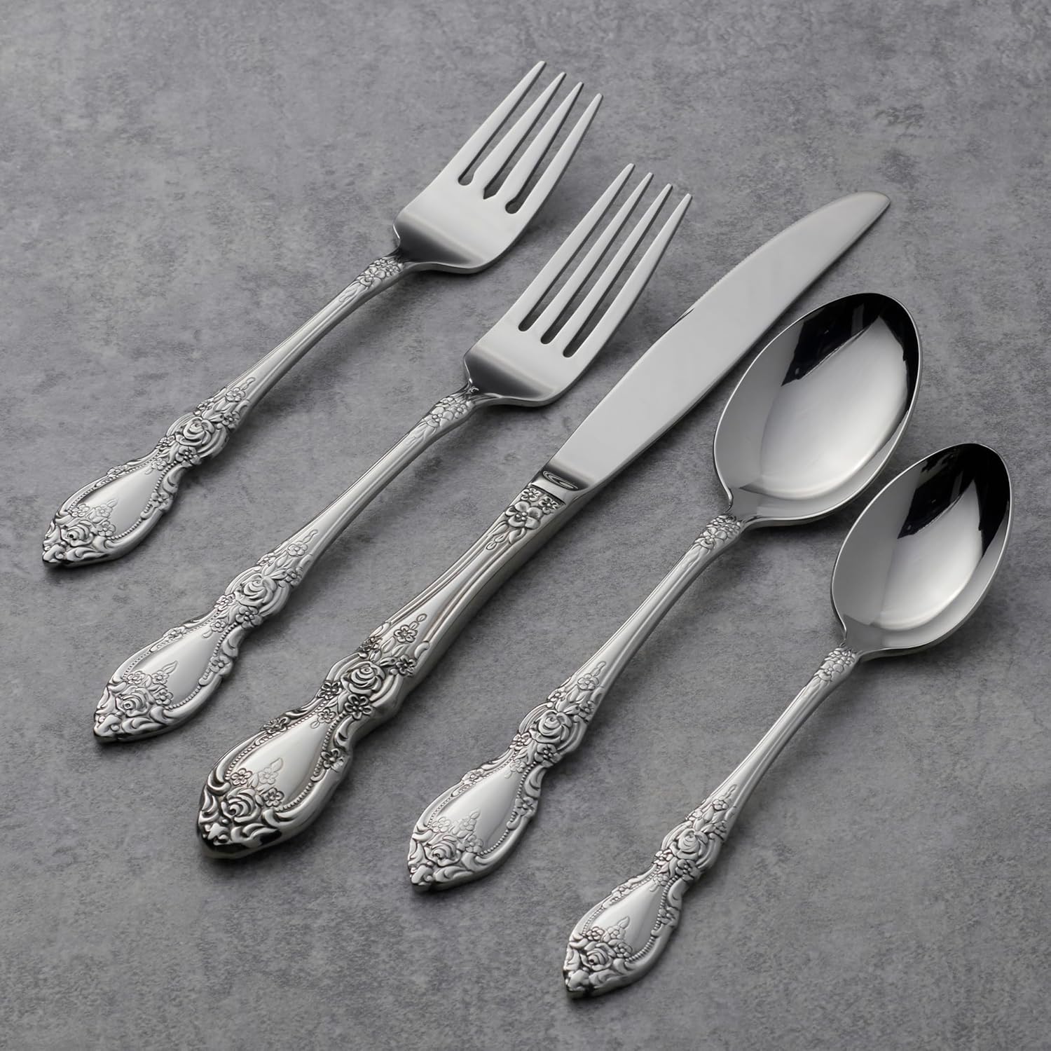- WHY ITโS SPECIAL: Oneida's Wordsworth flatware celebrates intricate detail with its flower-adorned handles and high-end finish that beautifully catches the light. This design embodies elegance and opulence, inviting you to indulge in the richness of a bygone era.