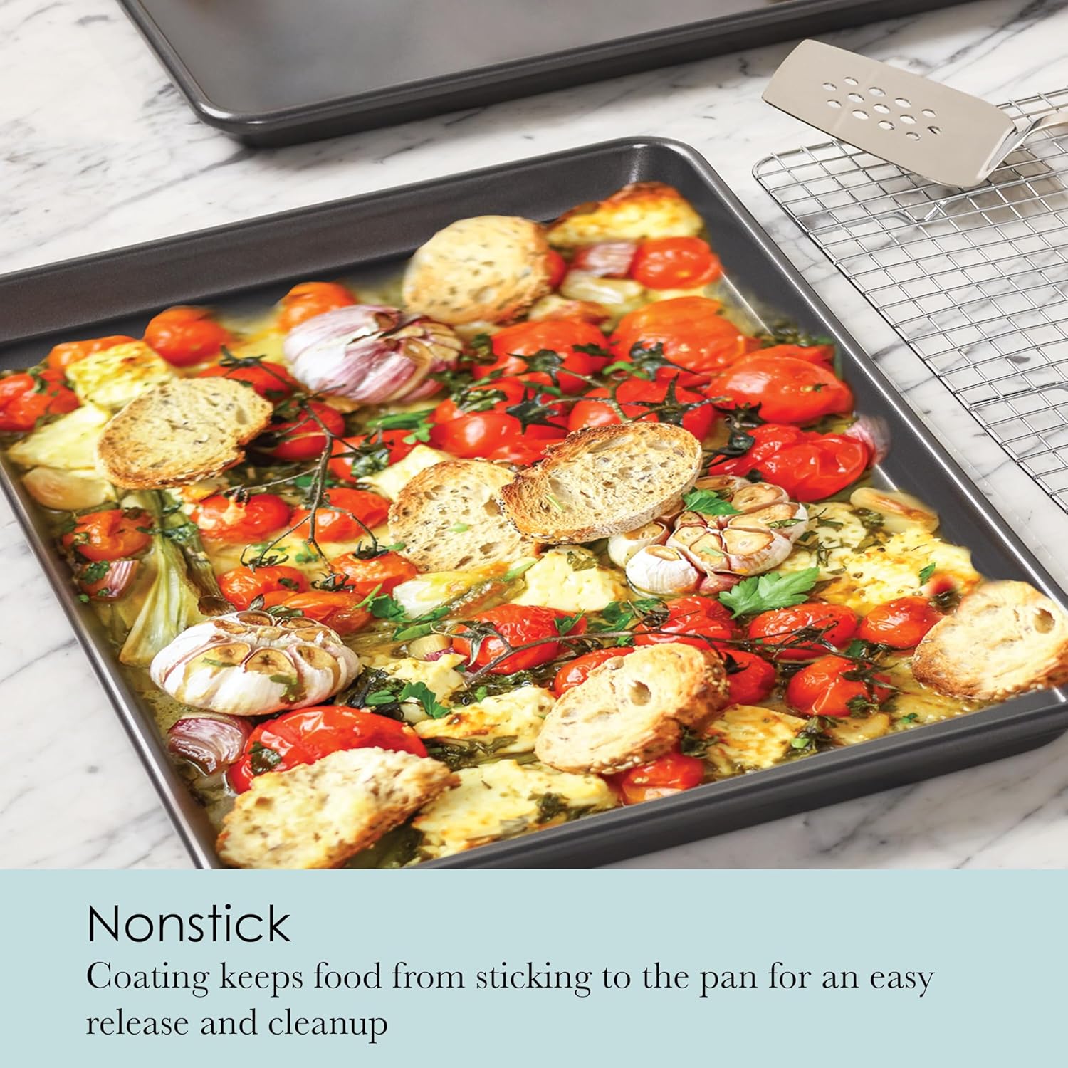 - IDEAL FOR BAKING MULTIPLE DISHES: The Chicago Metallic Non-Stick Baking Sheet Set is ideal for all types of baking and cooking. Have the flexibility to bake jelly rolls, bars, cookies, one-sheet pan meals, roast vegetables or reheat leftovers