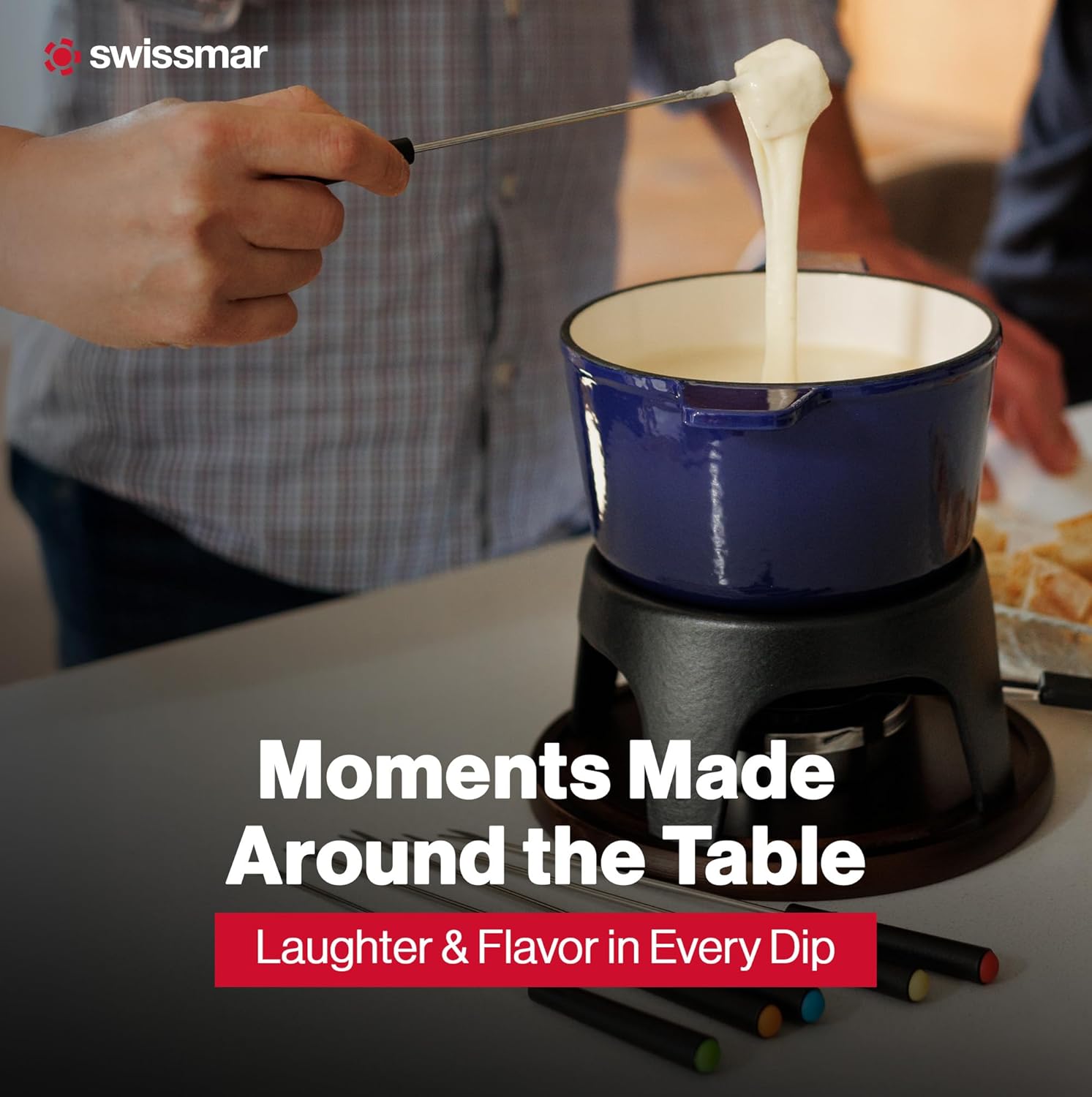 Swissmar Sierra Cast Iron Fondue Set, 1.6 Quart / 1.6 Liter – Perfect for Meat, Cheese, & Chocolate Fondues – Ideal for Family Bonding & Hosting Gifts - 12-Pieces, Deep Blue