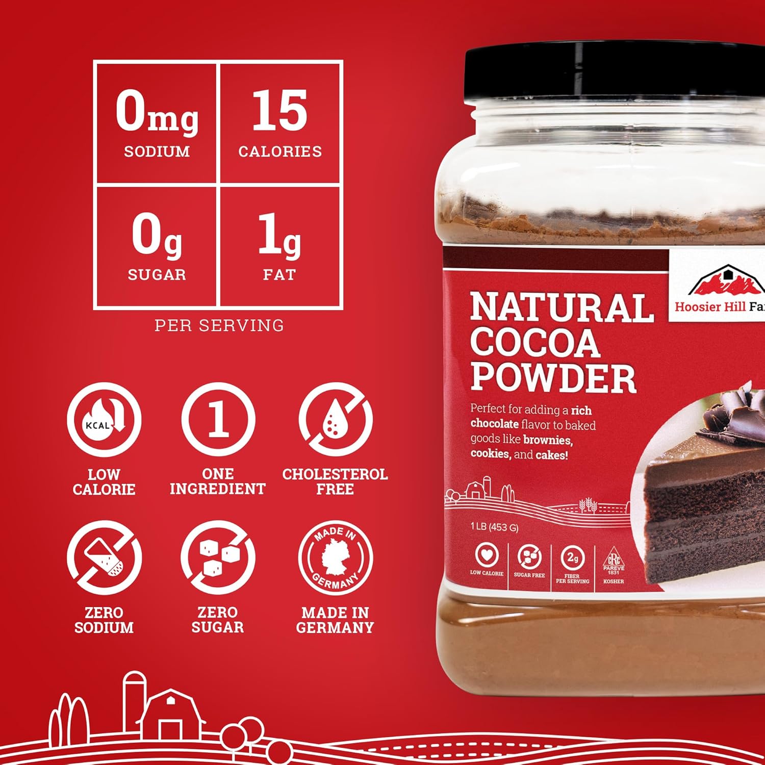 Hoosier Hill Farm Natural Cocoa Powder, 1LB (Pack of 1)