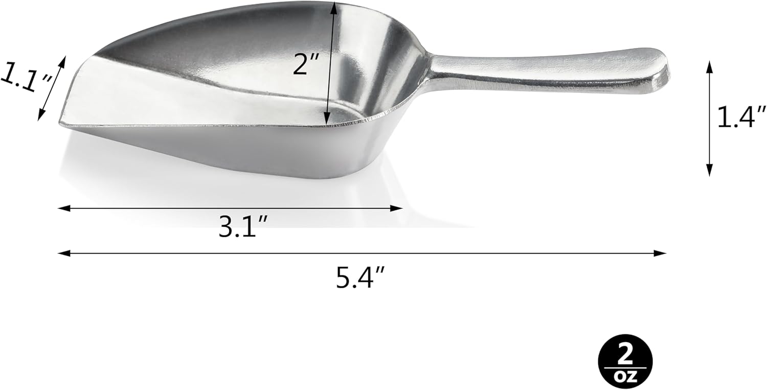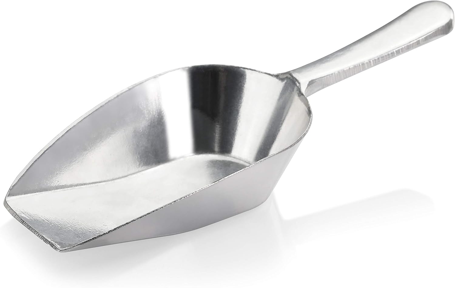 New Star Foodservice 34646 One-Piece Cast Aluminum Flat Bottom Bar Ice Flour Utility Scoop, 2-Ounce, Silver