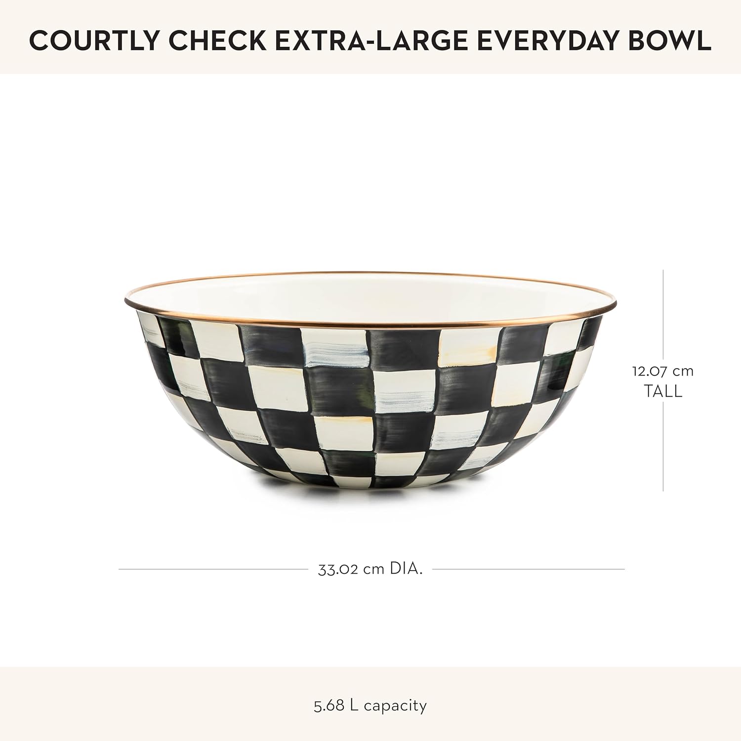 MACKENZIE-CHILDS Enamel Everyday Bowl, Serving Bowl for Entertaining, Extra-Large, Black-and-White Courtly Check, Set of 1