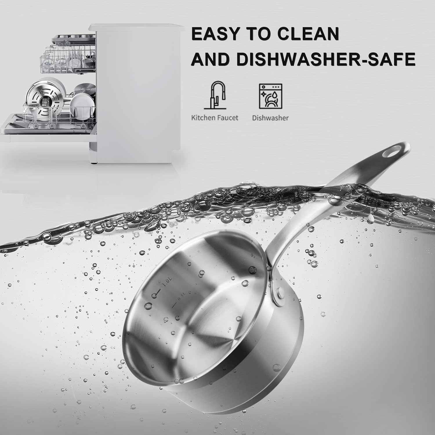 - GUARANTEE: This stainless steel cookware is oven-safe to 550°F (glass lid is oven safe to 400℉). Dishwasher-safe. Freezer-safe for food storage