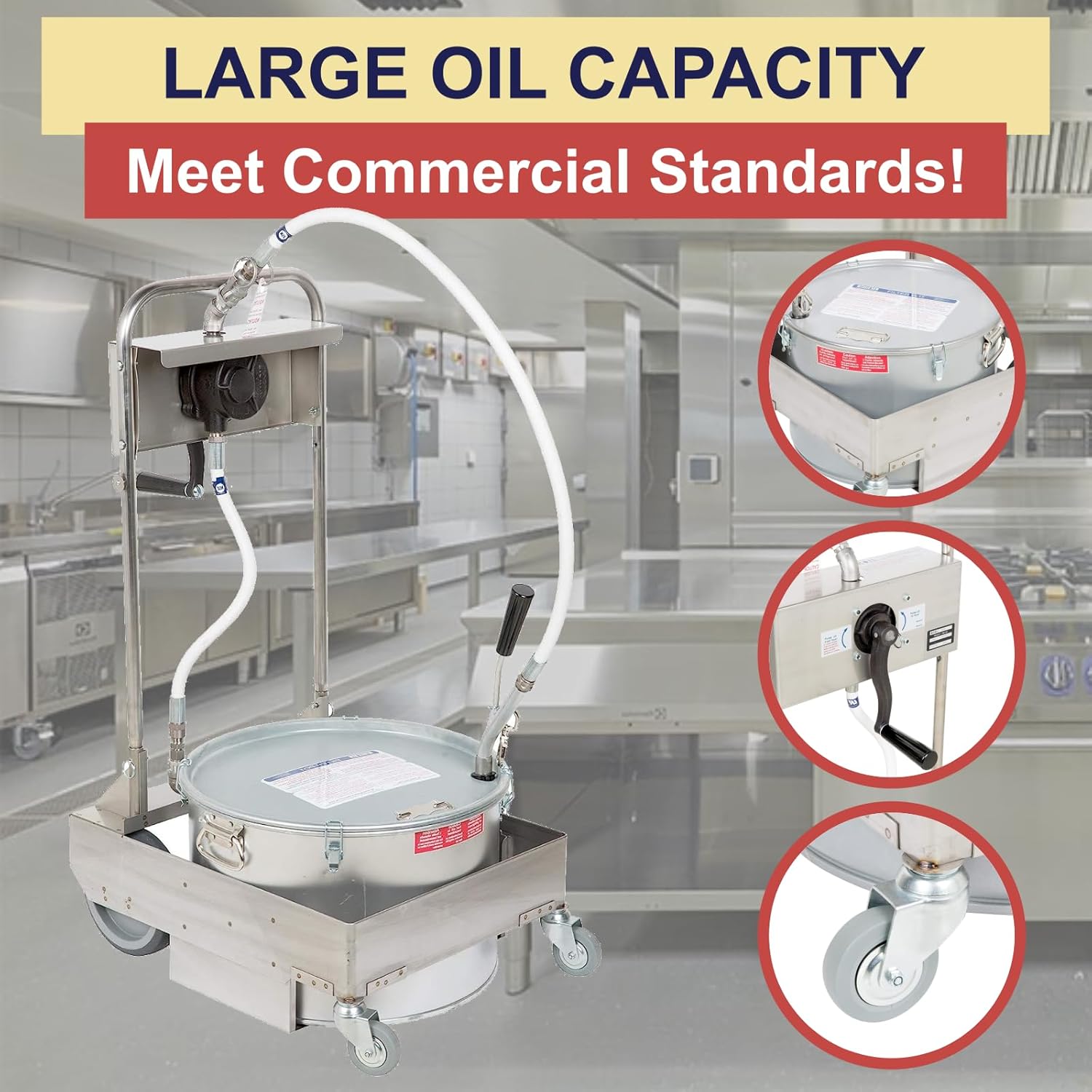MirOil 75HD Fryer Oil Filter Machine w/Discard Trolley & Hand Operated Pump, Filtration System for Deep Fryer for Catering, Restaurant & Food Trucks, Portable Oil Filter Machine for 75lb Fryer Grease