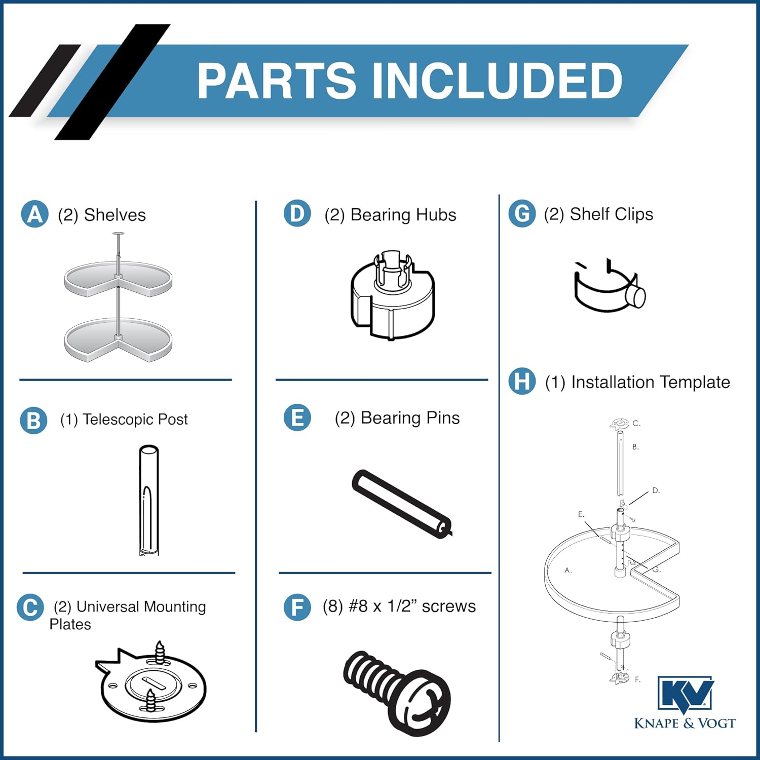 - Complete Two-Tier Storage Solution: Includes two kidney-shaped shelves, one post, mounting hardware, and an installation template for simple and quick setup
