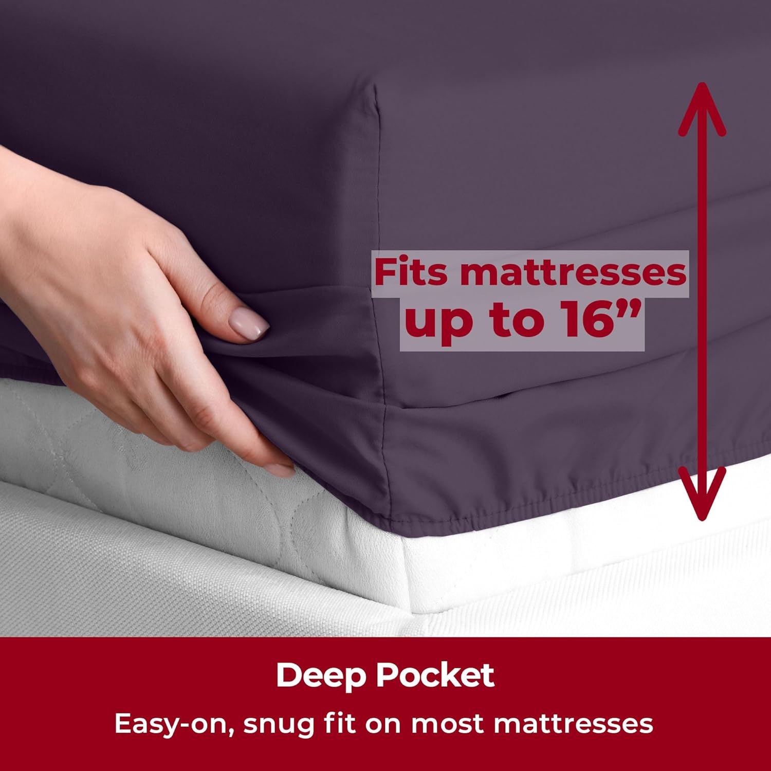 Mellanni Twin Sheets Set - 3 PC Iconic Collection Bedding - Hotel Luxury, Extra Soft, Cooling Bed Sheets - Wrinkle, Fade, Stain Resistant (Twin, Purple)
