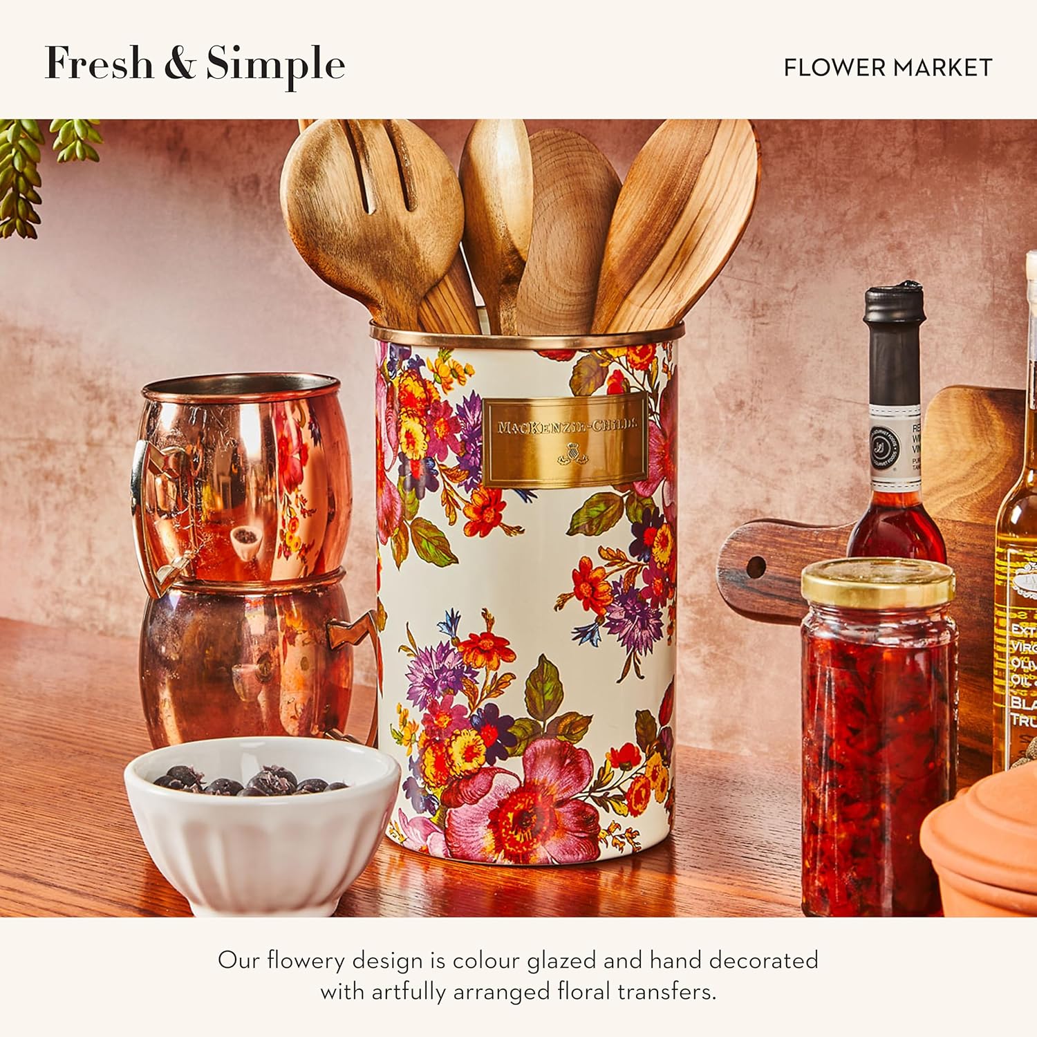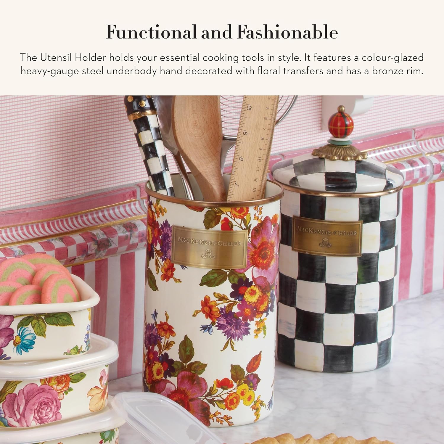 MACKENZIE-CHILDS Enamel Utensil Holder, Kitchen Utensil Holder for Countertop, Storage Caddy, White Flower Market