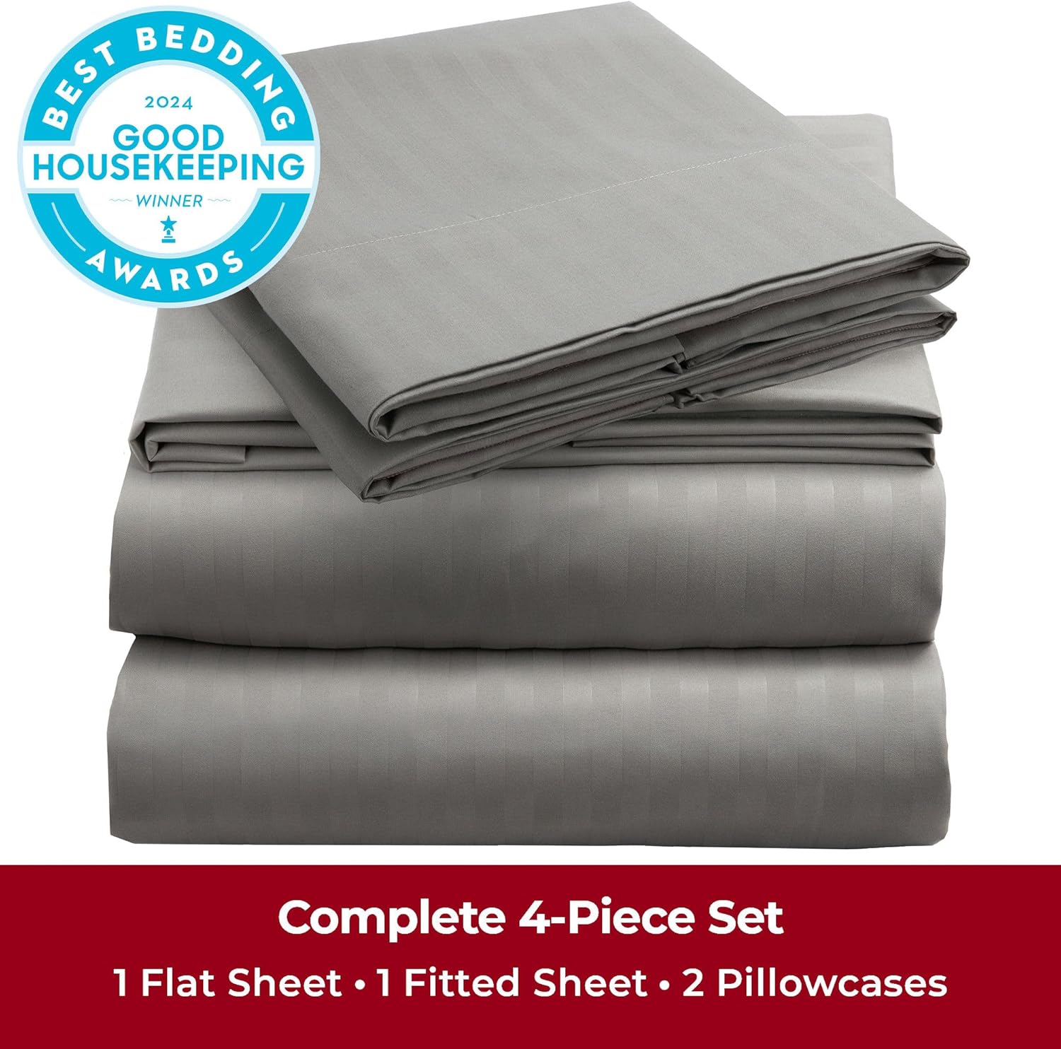 Mellanni Full Sheets Set - 4 PC Iconic Collection Bedding - Hotel Luxury, Extra Soft, Cooling Bed Sheets - Wrinkle, Fade, Stain Resistant (Full, Striped Gray/Silver)