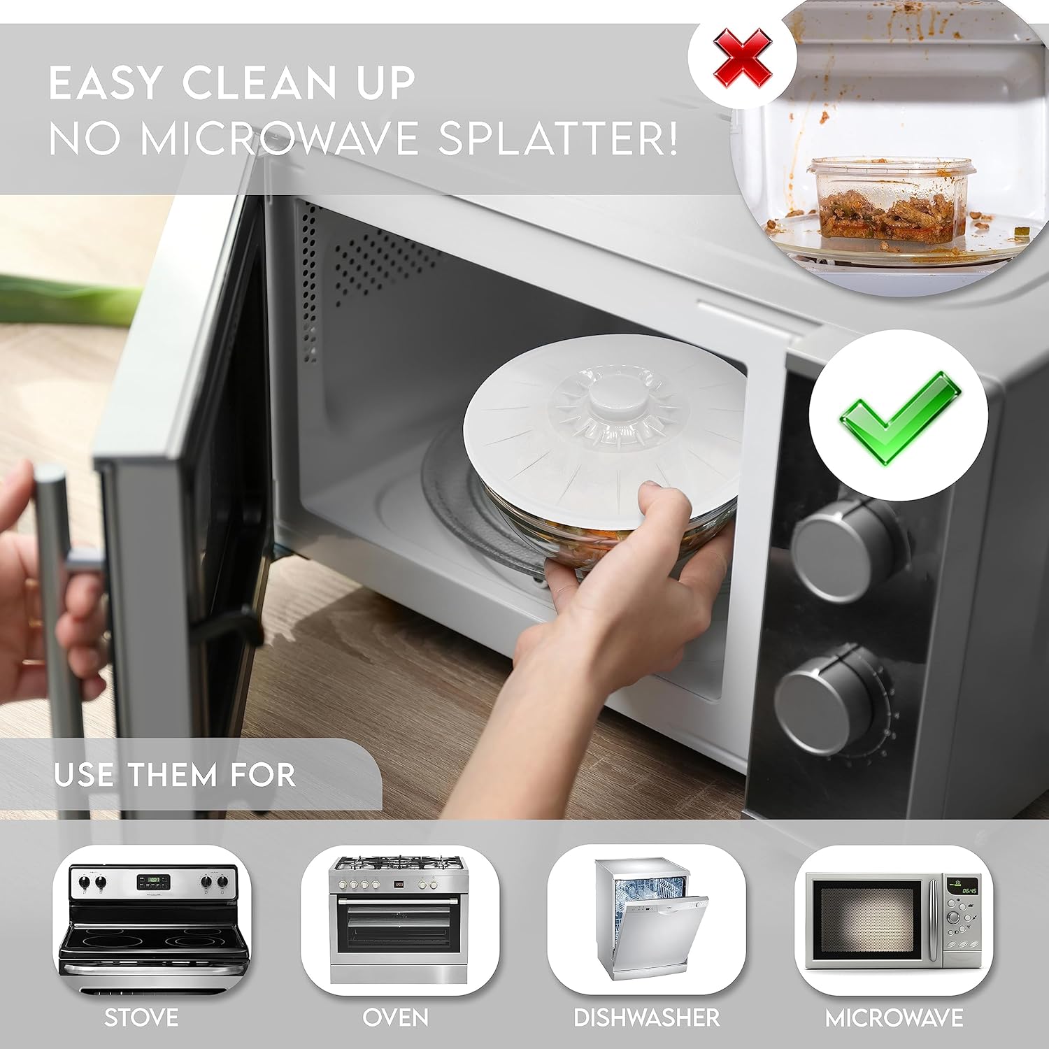 - GREAT GIFT IDEA for anyone who cooks or entertains. These attractive yet sturdy translucent food covers are perfect for cooking and leftovers, yet complement any variety of holiday or special occasion table settings. Youβll make their life easier too with these handy, high quality and attractive tools. Safe in oven, microwave, stove top, and fridge from -40F to 450F in sizes 5, 6, 7, 7.8, and 10.2 inches. Food Grade Silicone and BPA free.