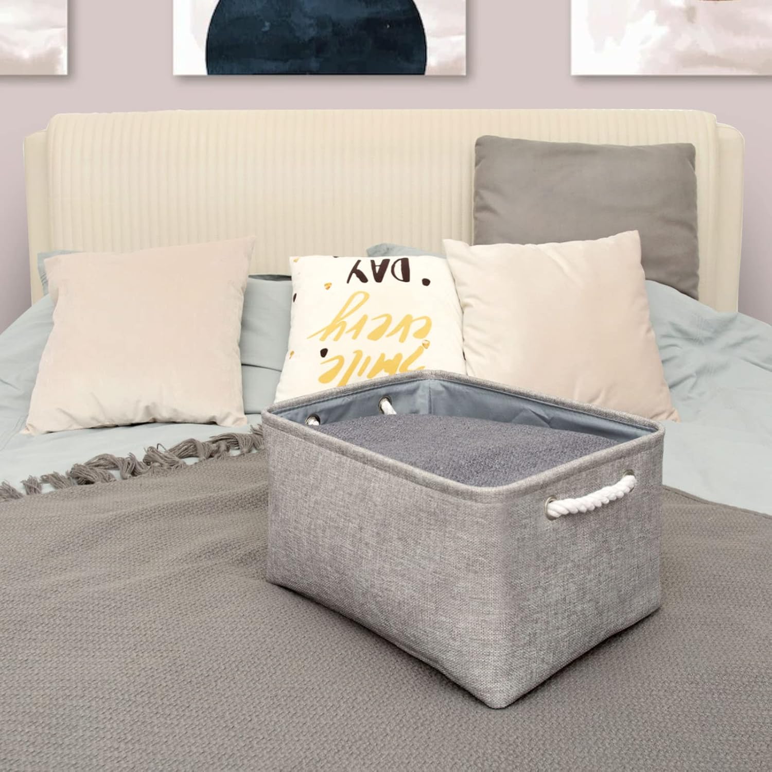- DECORATIVE & ARTISTIC & GIFT BASKET - As a must have for home organization and storage, TheWarmHome organizer bins is the perfect gift basket. 1.TheWarmHome Bins had big storage capacity 2.Minimalist design and neutral grey color can be integrated into any home decorations and styles.3.Contrast other material, Fabric softer and Foldable, easy storage and clean, better use in home. 4.10 years + professional factory, Use better EVA fabric, TheWarmHome, WARM YOUR HOME