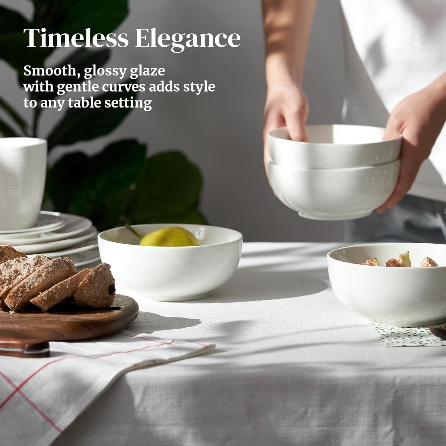 DOWAN 22 OZ White Ceramic Bowls Set of 4 - Perfect for Soup Bowls for Kitchen, Cereal Bowl, Ramen Bowl, Microwave Safe for Oatmeal, Fruit,Salad and Rice Bowl - Dishwasher & Microwave Safe