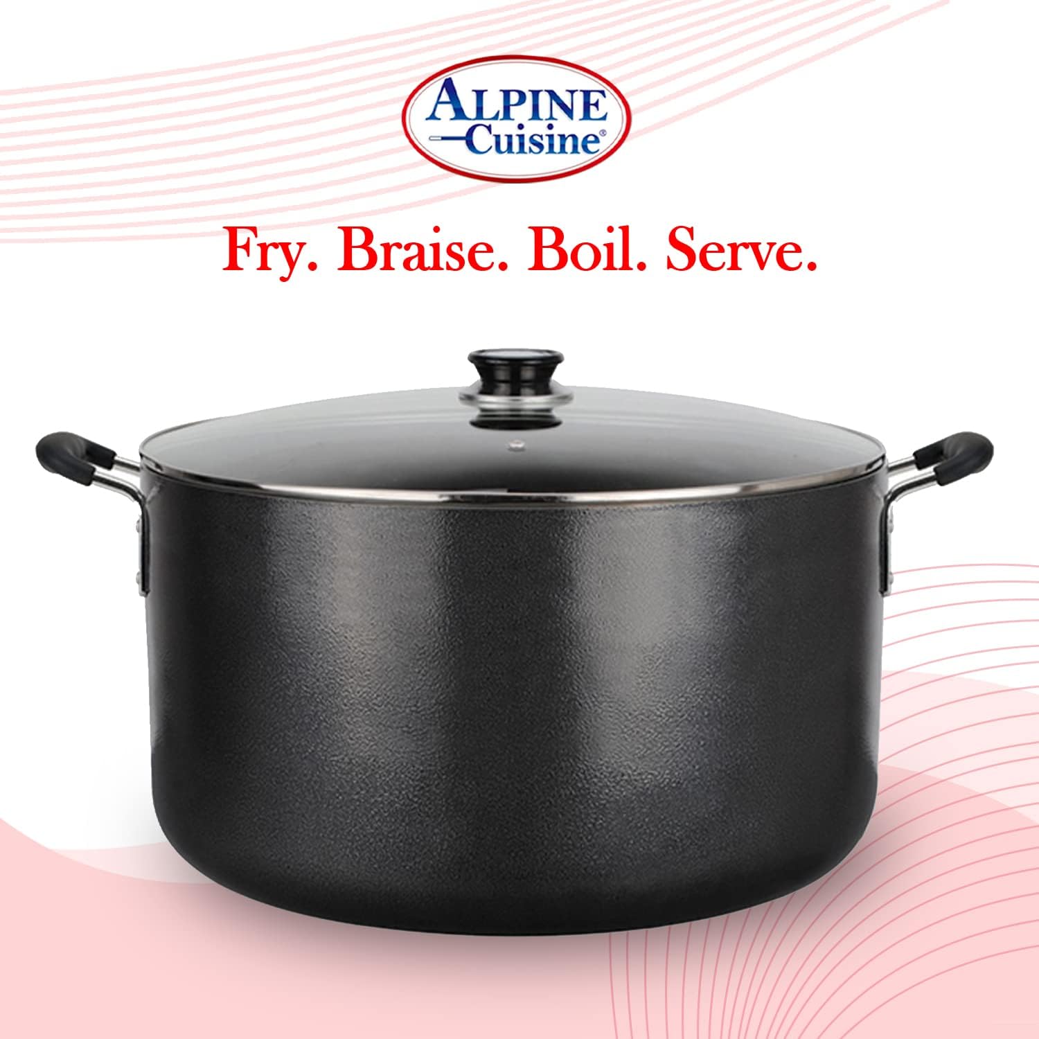 Alpine Cuisine 30 Quart Non-stick Stock Pot with Tempered Glass Lid and Carrying Handles, Multi-Purpose Cookware Aluminum Dutch Oven for Braising, Boiling, Stewing