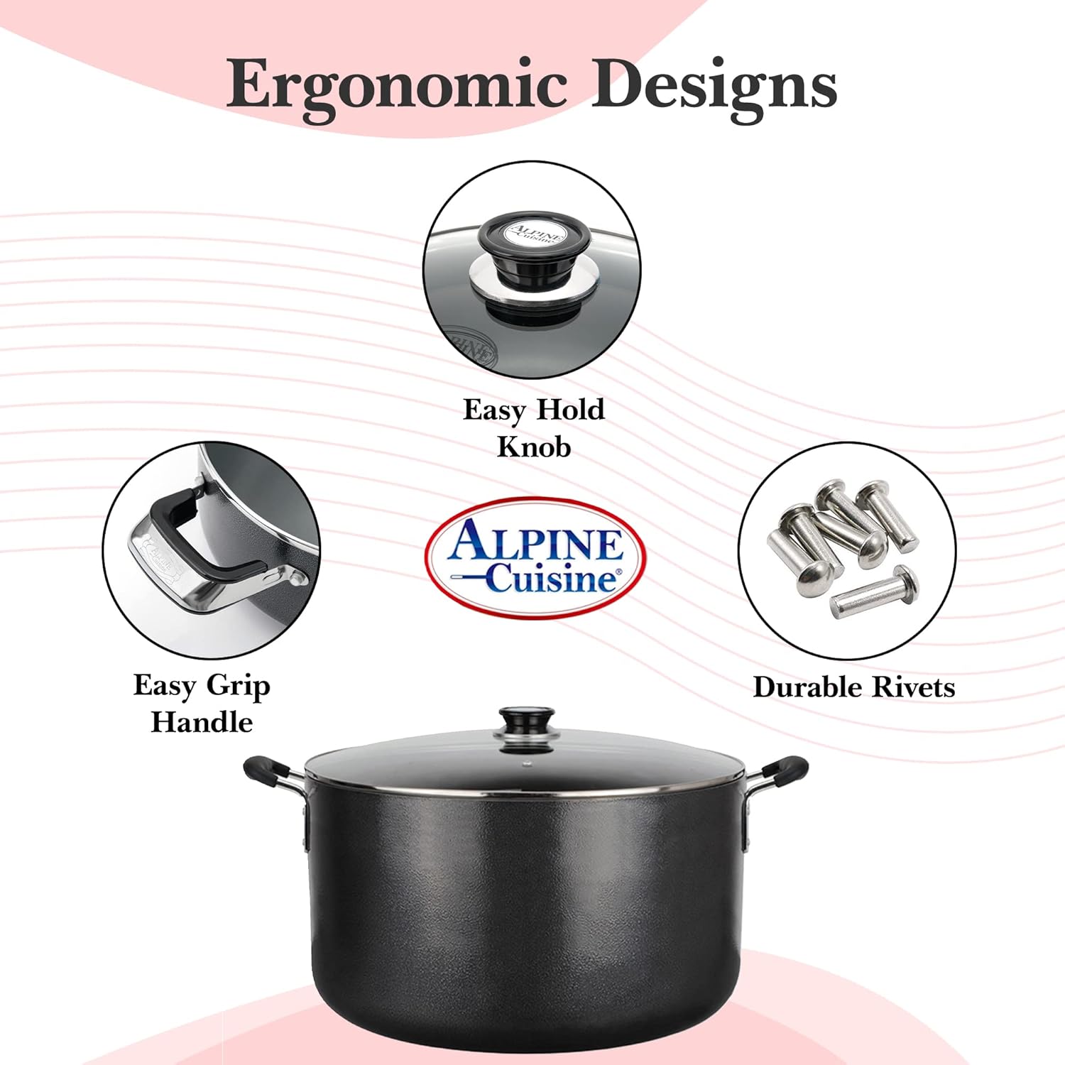 - CARRYING HANDLES: Cool-Touch Carrying Handles Are Safe to Use When Moving Food Off the Cooktop, and the Sturdy Carrying Handles Make It Simple and Secure to Move the Pot from One Burner to Another, Across the Kitchen, or Out of the dutchoven. The Glass Lid Allows You to Monitor Your Foods While cooking pots and the Handles Make It Easy to Transport During and After Cooking.