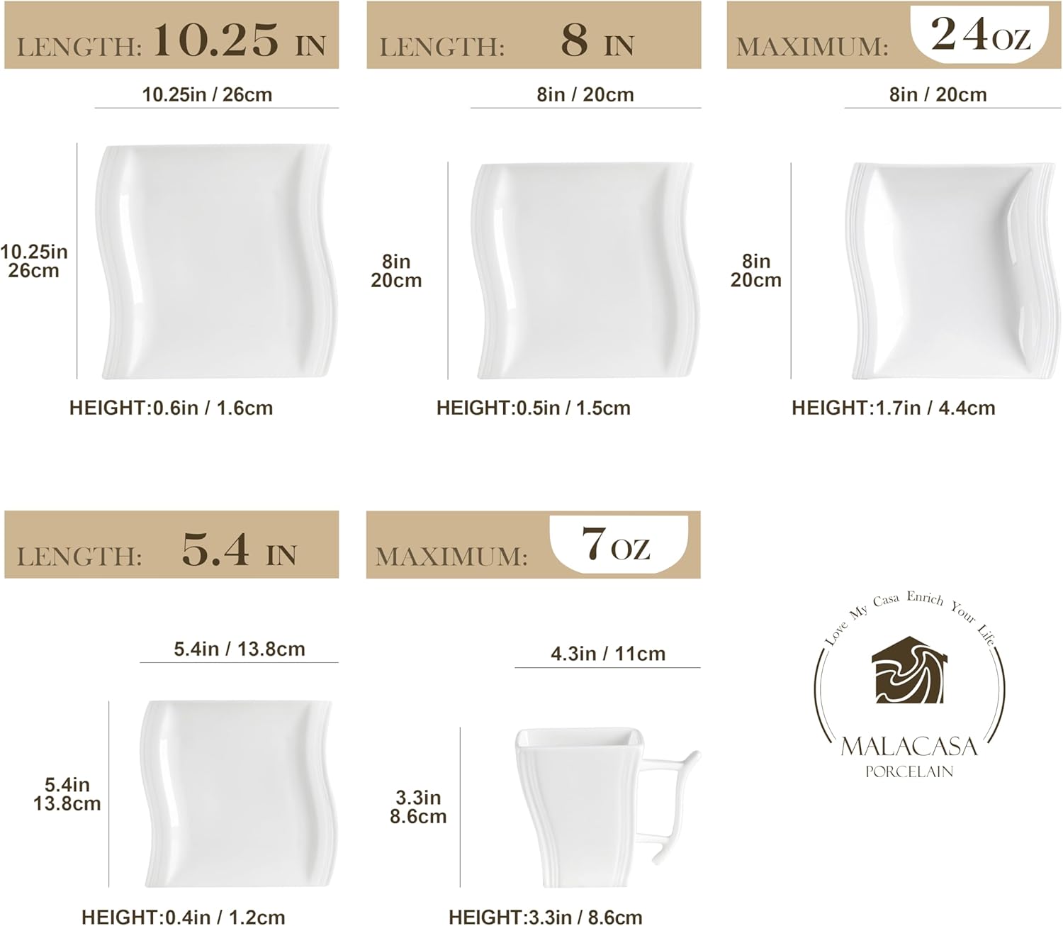 - Stylish & Low Maintenance -- Featured with low-profile square wavy-shaped design, each piece of dinnerware sets are distinct; FLORA dinnerware set is designed to provide the best dining experience while requesting low maintenance, saves you time and effort in upkeep.