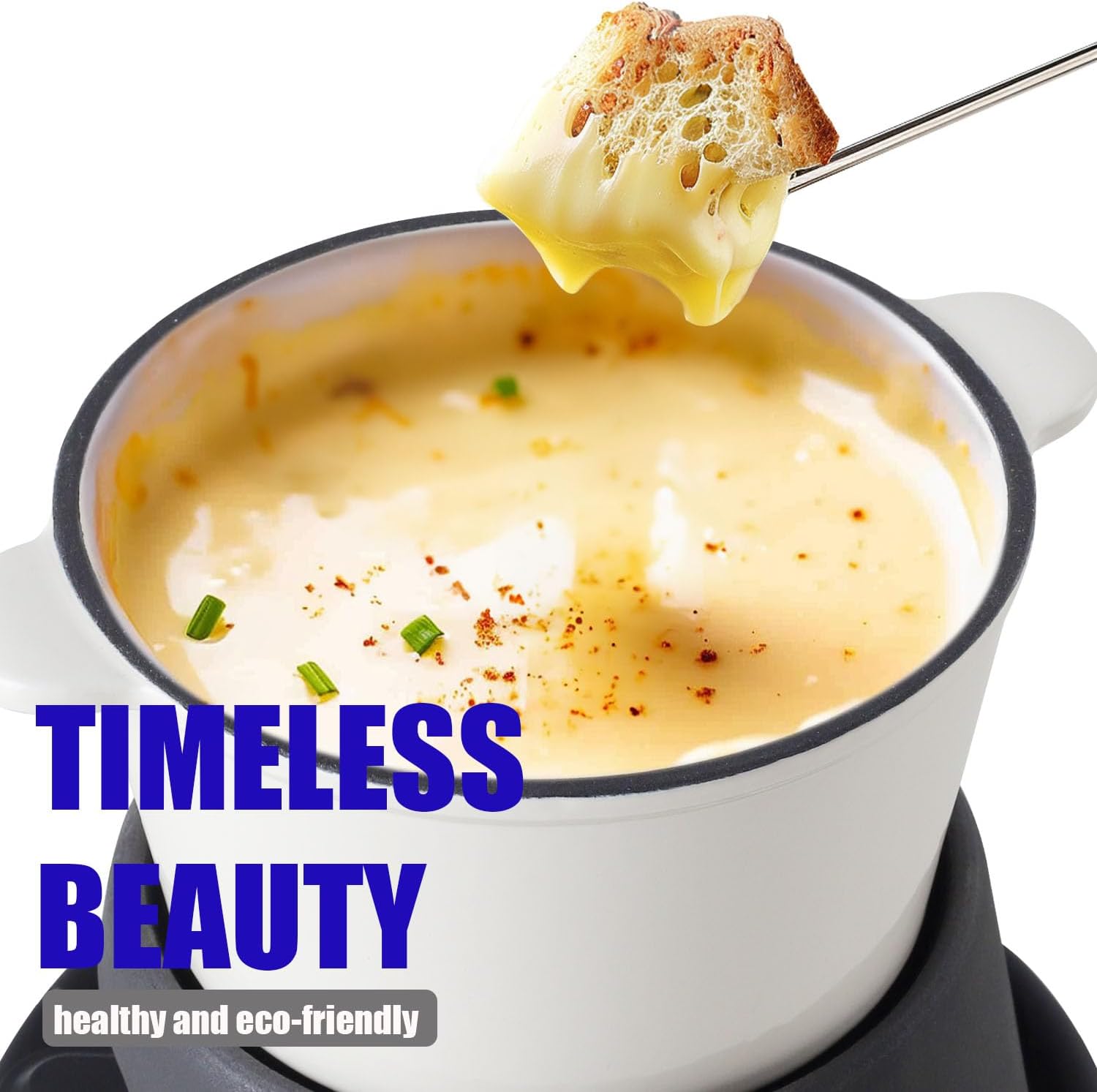 Artestia Cast Iron Fondue Pot Set for Chocolate Cheese Swiss Fondue Set for Meat with 6 Fondue Forks, Cheese Camping Fondue Set Serve 6 Persons(White)