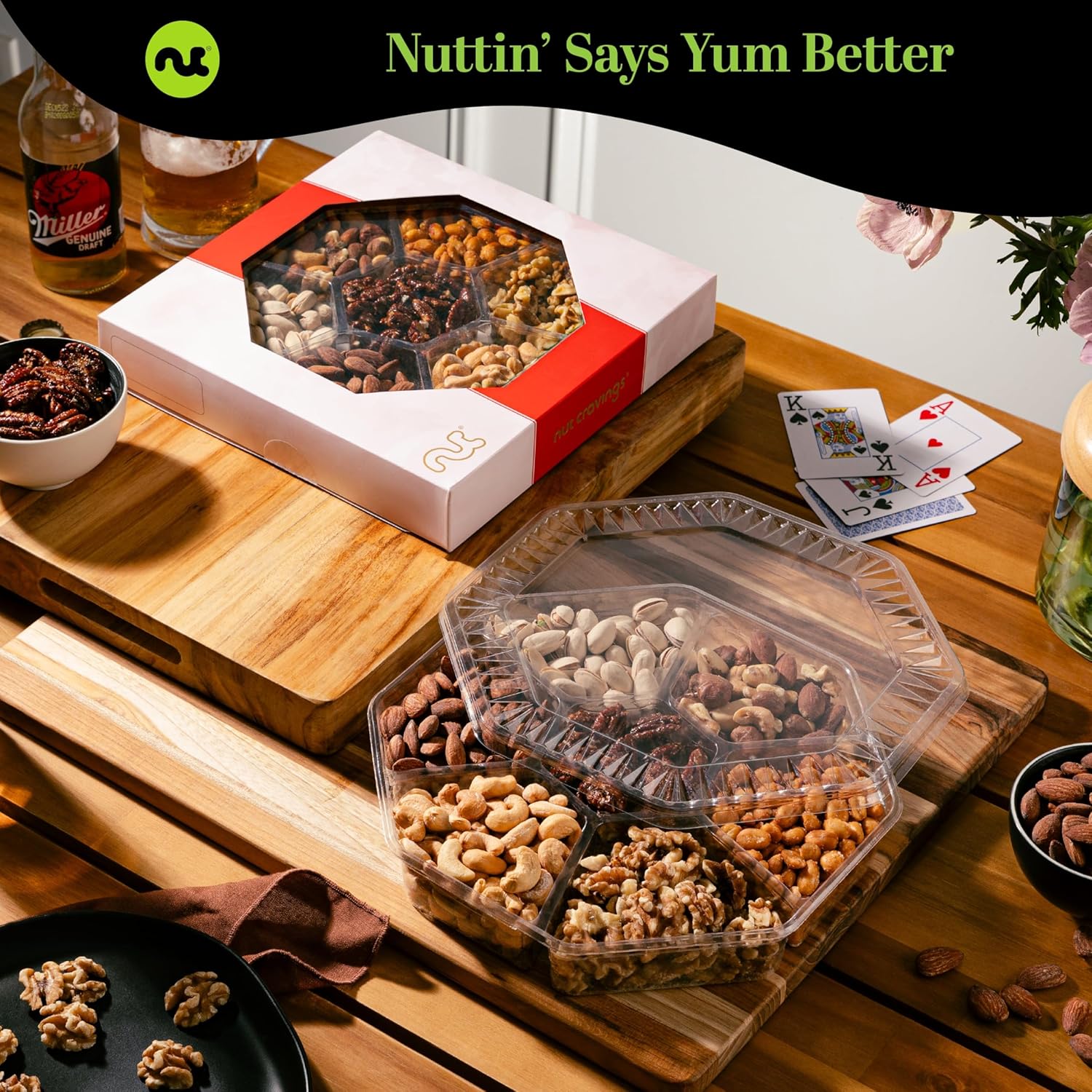- TOP 'NUTCH' CUT-OUT WINDOW & GOLD-STAMPING PACKAGING: High-end packaging featuring a unique and sophisticated design with elegant gold stamping and a cut-out window that allows you to see the goodness inside. Plus, our nuts come in a covered sturdy and clear 7 sectional hexagon-shaped tray that makes it easy for you to share them with the people you love.