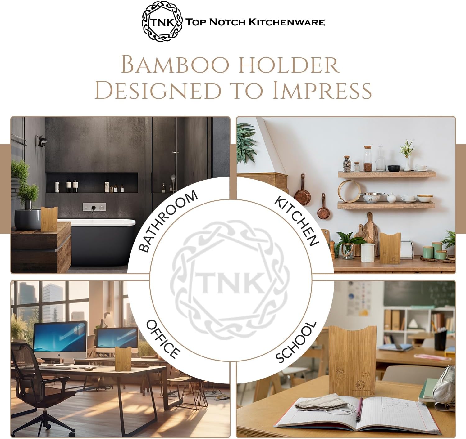 - PREMIUM BAMBOO CONSTRUCTION UTENSIL HOLDER:- Our Top Notch Kitchenware utensil holder is crafted with premium bamboo construction, ensuring a durable and long-lasting storage solution for your kitchen tools. Bamboo is known for its exceptional strength and resilience, making it an ideal material choice for a high-quality kitchen utensil holder. Wooden utensil organizers are also sustainable, The natural beauty of bamboo adds a touch of elegance to wooden utensil holders.