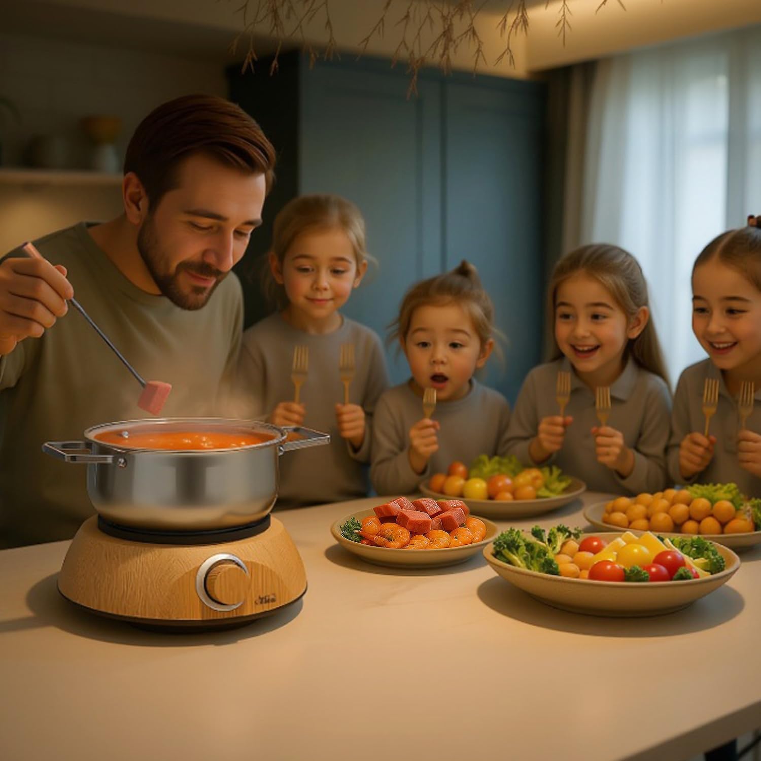 - MORE SAFE & CONVENIENT - Our electric fondue maker is attractive and functional, and the base of the pot is a hot plate with a temperature control knob itβs very adjustable in terms of how hot you want to make things, heats up quickly, and maintains a steady temperature.