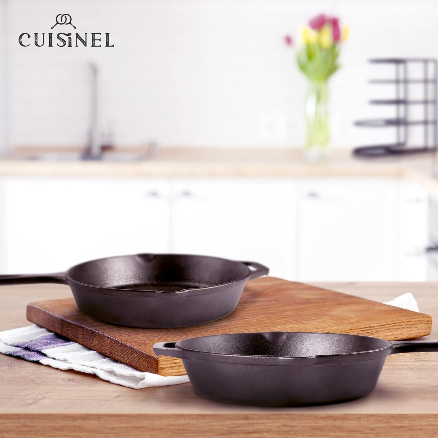 - TRUE COOKING VERSATILITY β The Cuisinel cast iron skillet pan can be used for frying, baking, grilling, broiling, braising, and sautΓ©ing meats, vegetables and more!