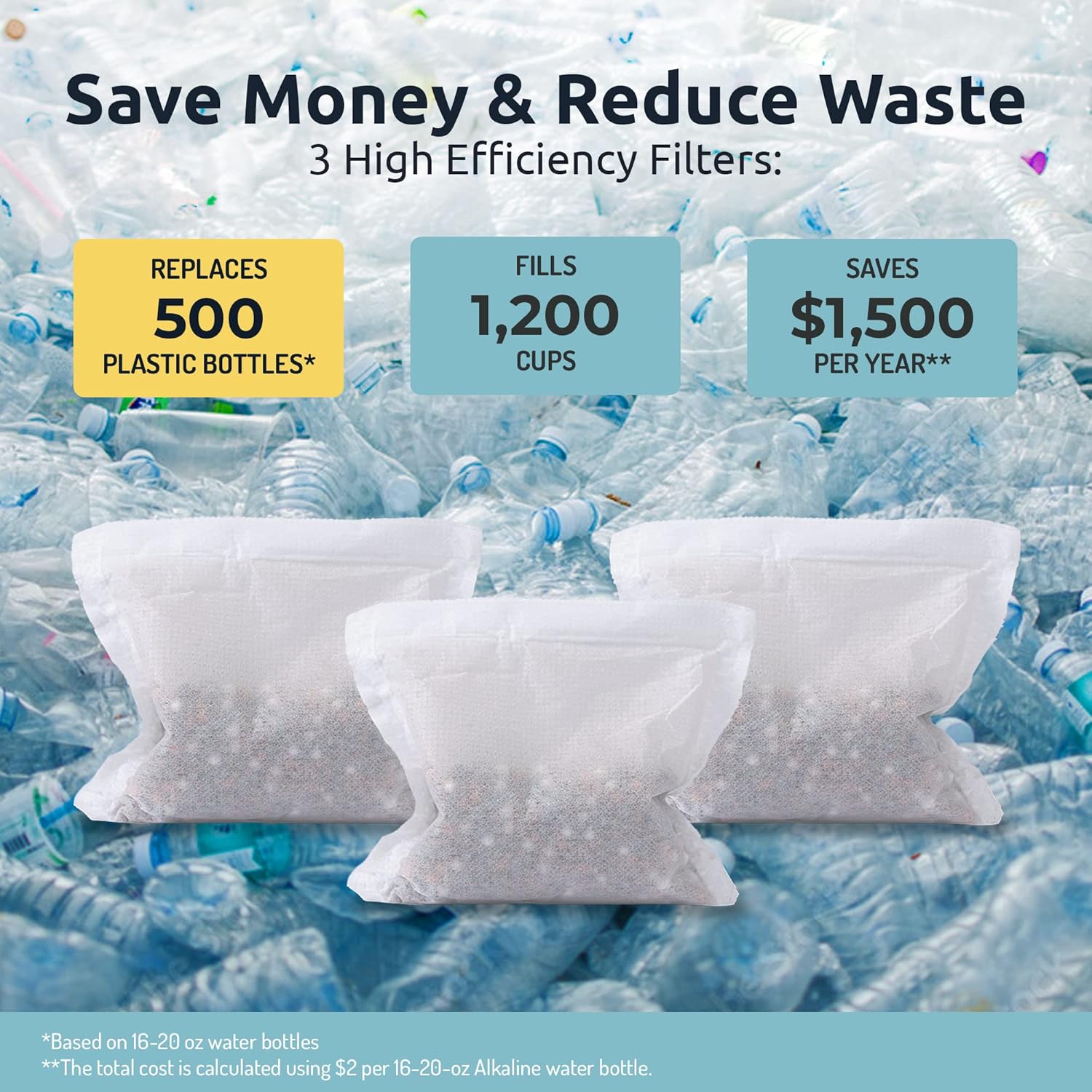 - HUGE FILTER CAPACITY - Each pH On-The-Go Filter Pouch can filter up to 416 cups / 98 liters / 26 gallons of water. You can use it with any water bottle, pitcher, or jug of your choice. The pouch lasts for a lifetime of 50 days with an average consumption of 8 glasses per day. An affordable solution to keeping you and your family healthy!