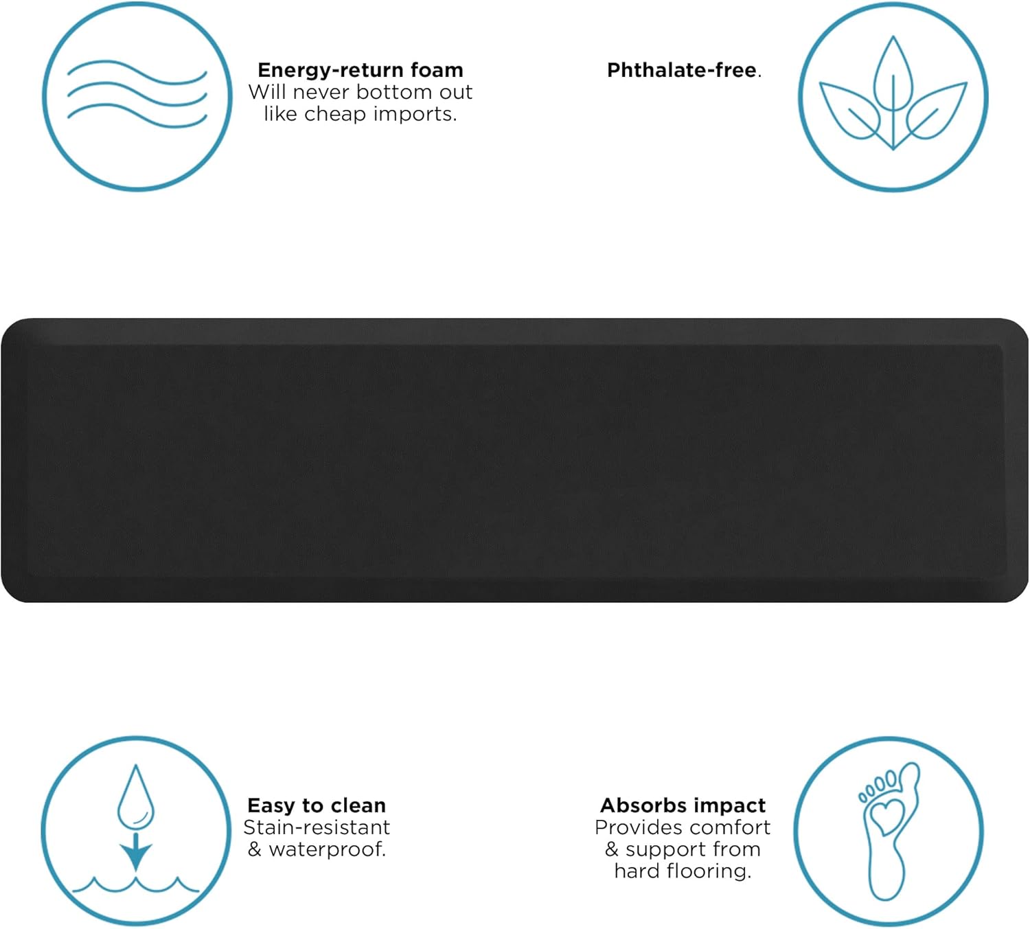 NewLife by GelPro Anti-Fatigue Nonslip 1/2" Thick Hard Floor Utility Mat for Garage, Patio and Kitchen, 20" x 72", Leather Grain Black