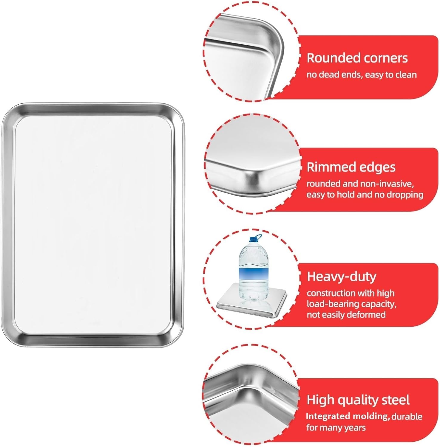 Baking Sheet, Stainless Steel Cookie Sheet Baking Pan Tray for Toaster Oven Size 9 x 7 x 1 Inch, Non Toxic & Healthy, Mirror Finish & Easy Clean, Dishwasher Safe