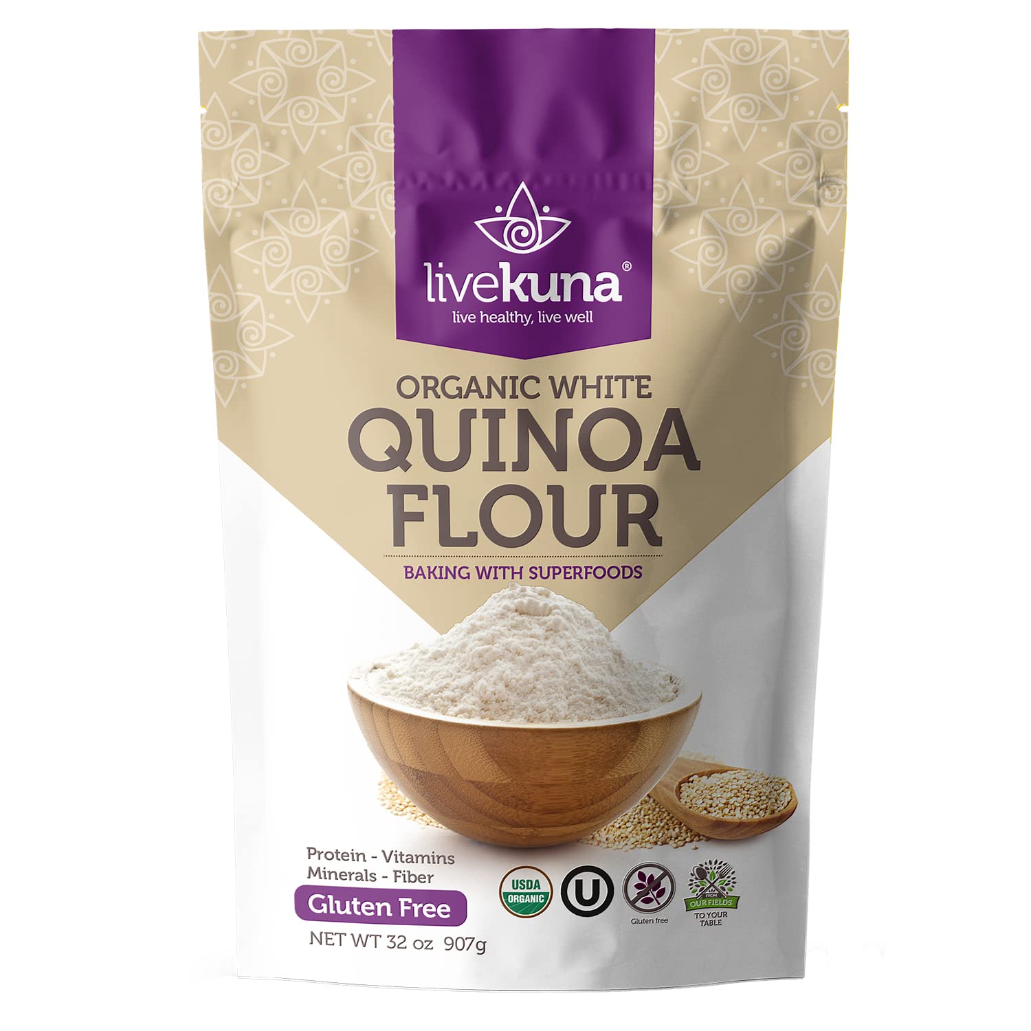 LiveKuna Organic Quinoa Flour - Gluten Free All Purpose Flour & Wheat Flour Alternative For Baking & Cooking Recipes - Vegan Quinoa Flour, Rich In Protein & Fiber for Keto & Paleo Diets, 32oz Bag