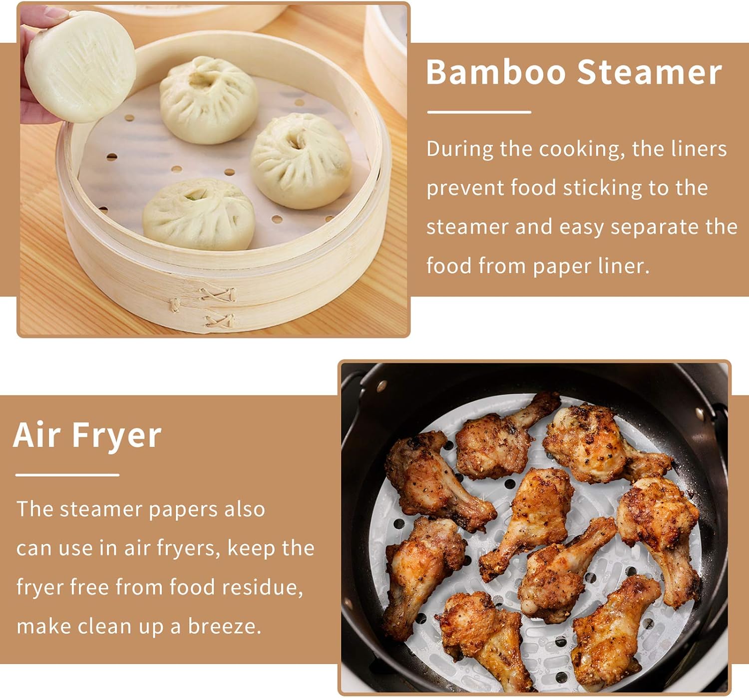 - Easy to clean, the round steaming papers keep your steamers and air fryers free from food residue, make clean up a breeze.