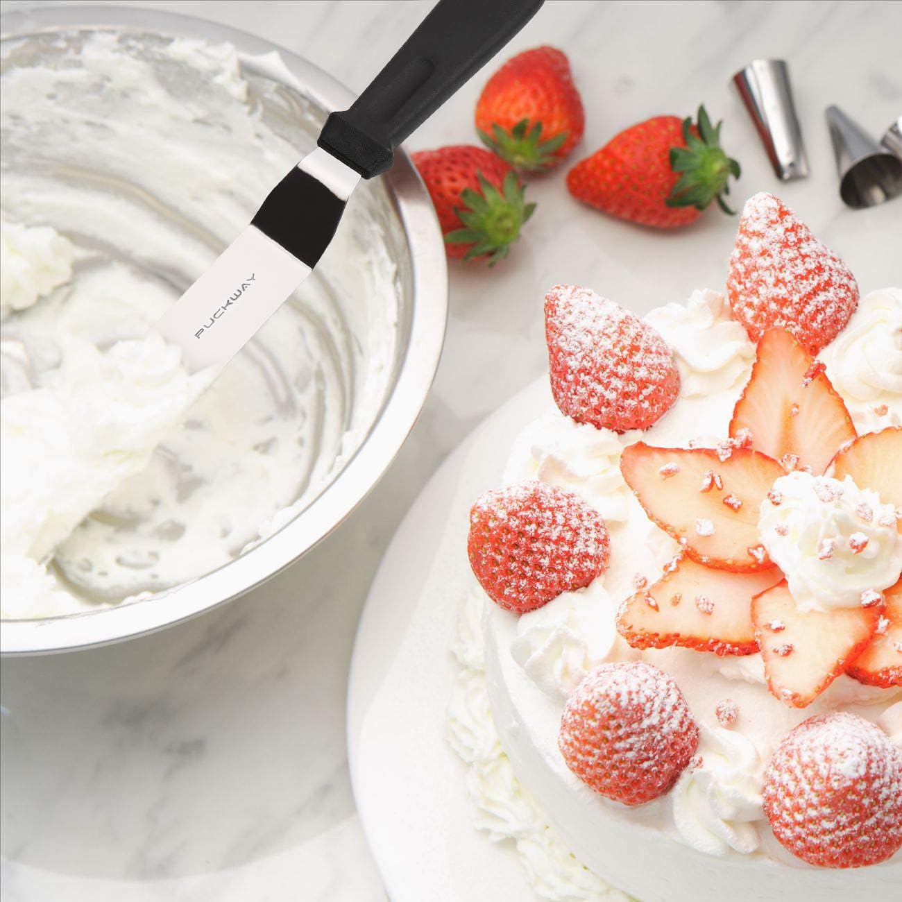- Two Professional Cake Decorating Spatulas: PUCKWAY offset spatula set comes in two different sizes: 6 inch and 8 inch blade. This is your best choice to decorate a cake perfectly.