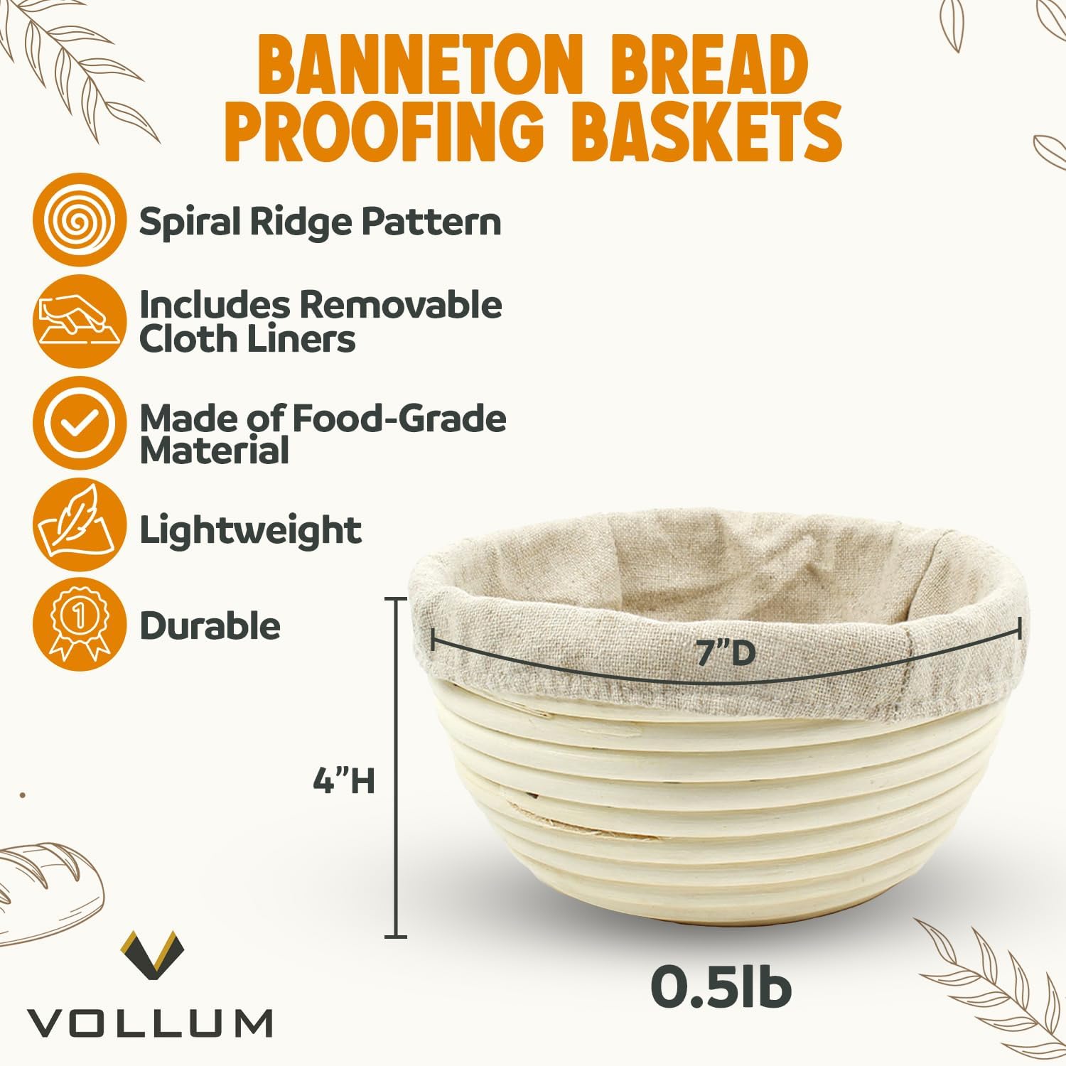 Banneton Bread Proofing Basket Sourdough Proofing Basket for Beginners & Professional Bakers, Handwoven Rattan Cane Bread Maker with Linen for Artisan Breads, 7 x 4 Inch, 0.5-Pound Round