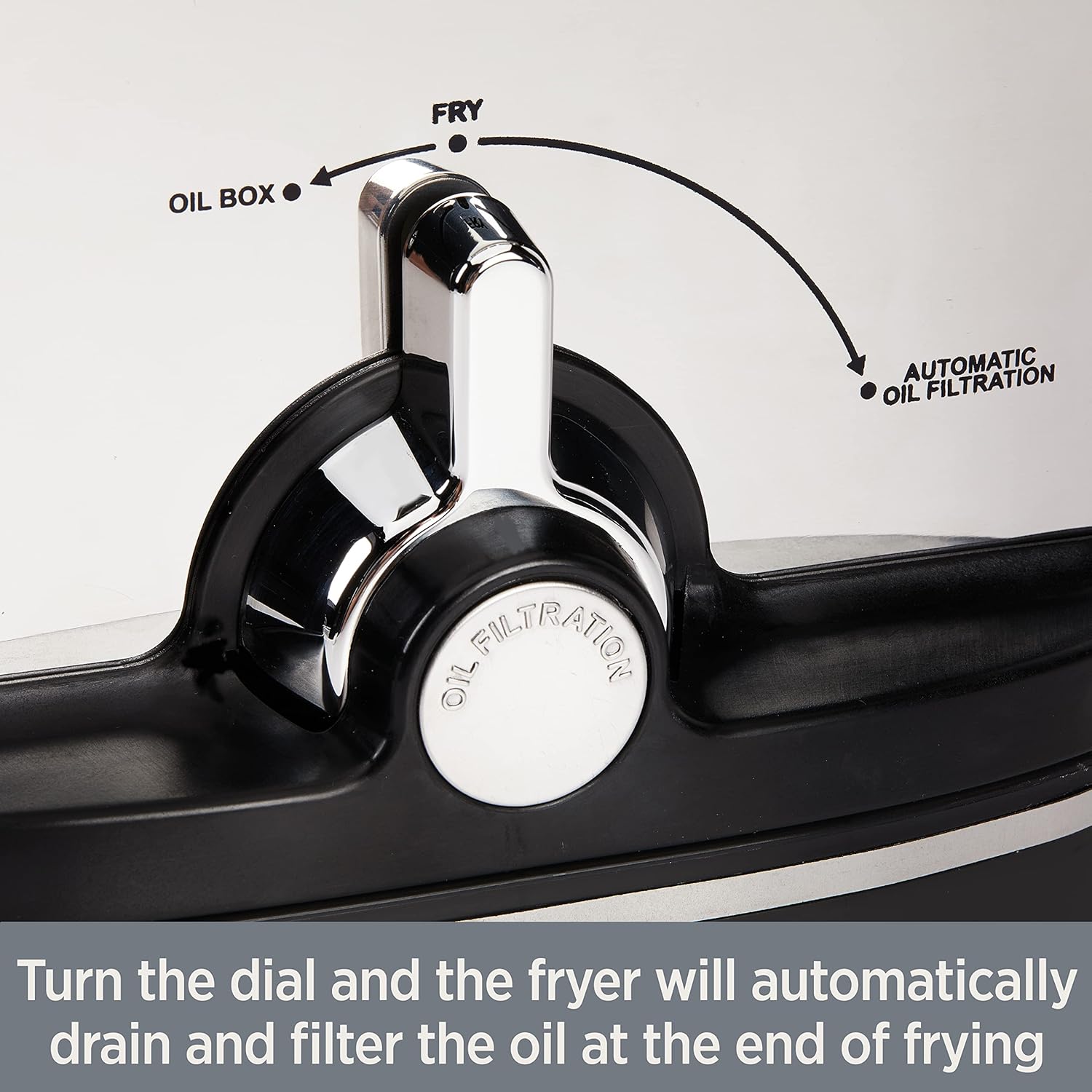 - PATENTED OIL FILTRATION: Our deep fryer with oil filtration and basket provides automatic oil management, storing oil for reuse while keeping your kitchen free from overwhelming smells