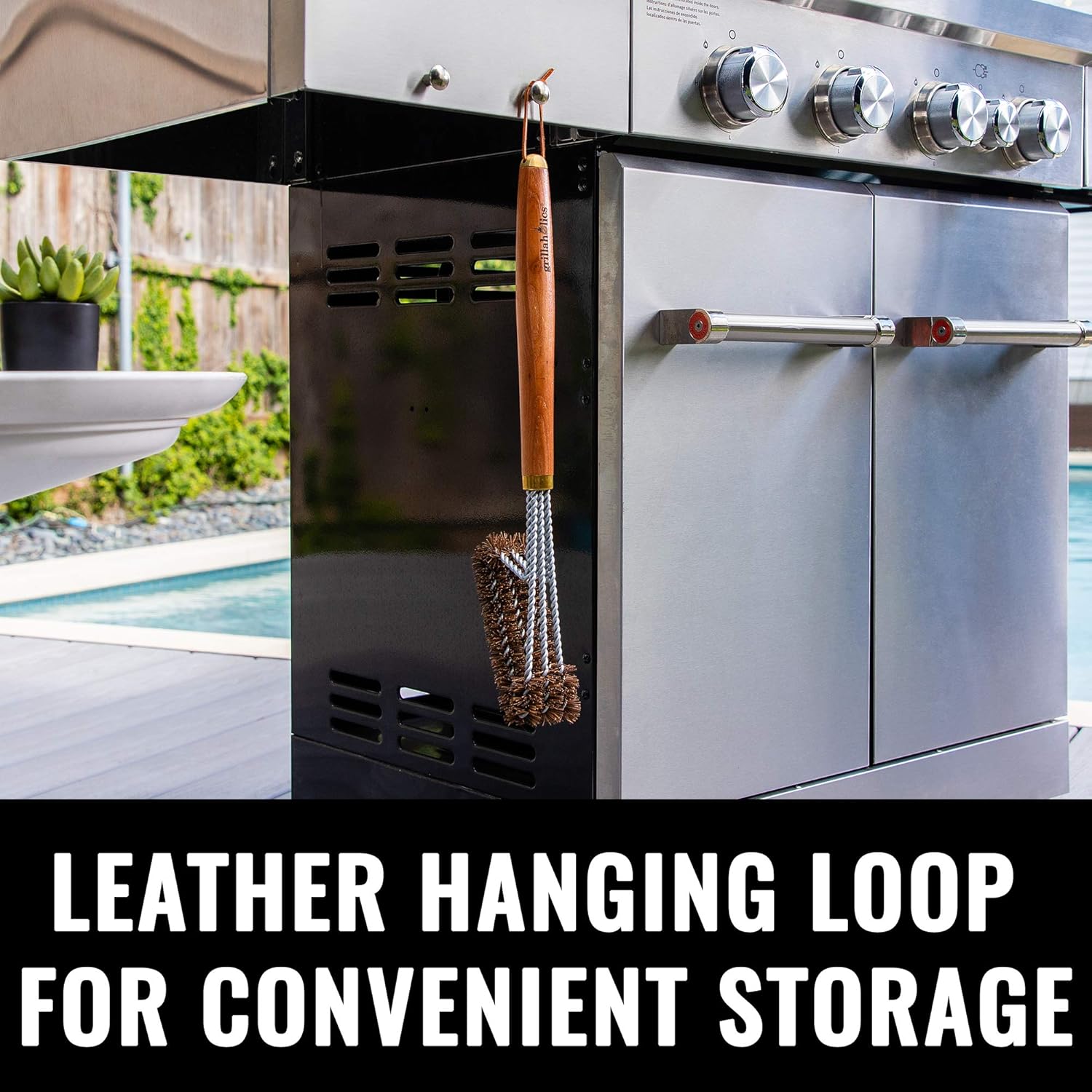 Grillaholics Pro Grill Brush Palmyra - Better Than a Bristle Free Grill Brush Natural Palmyra Bristle Brushes Clean Between The Grates and Season Your Grates
