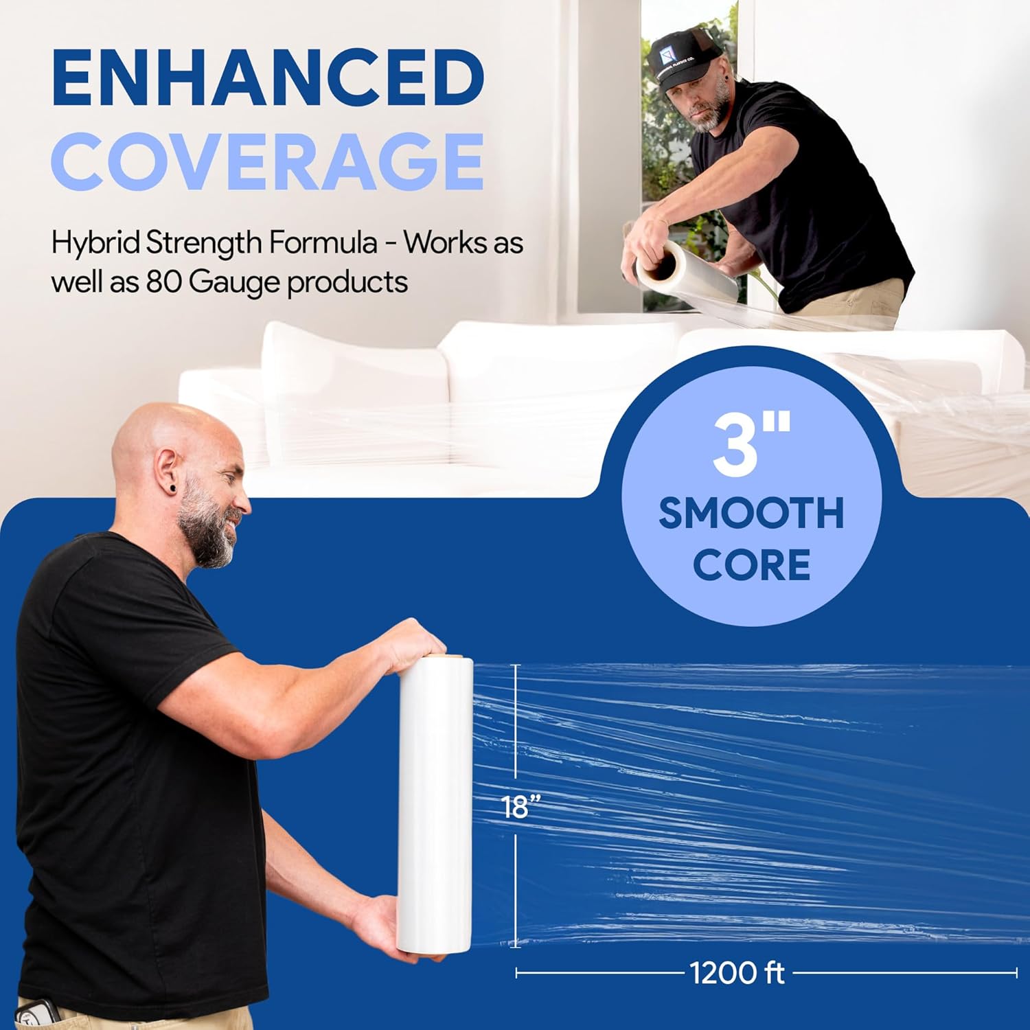 - CONQUER MOVING DAY: Wrap, bundle, and secure all your belongings with ease using this 4 pack of 18" x 1200 ft stretch film with 3" smooth core. Move with confidence knowing your items are protected!