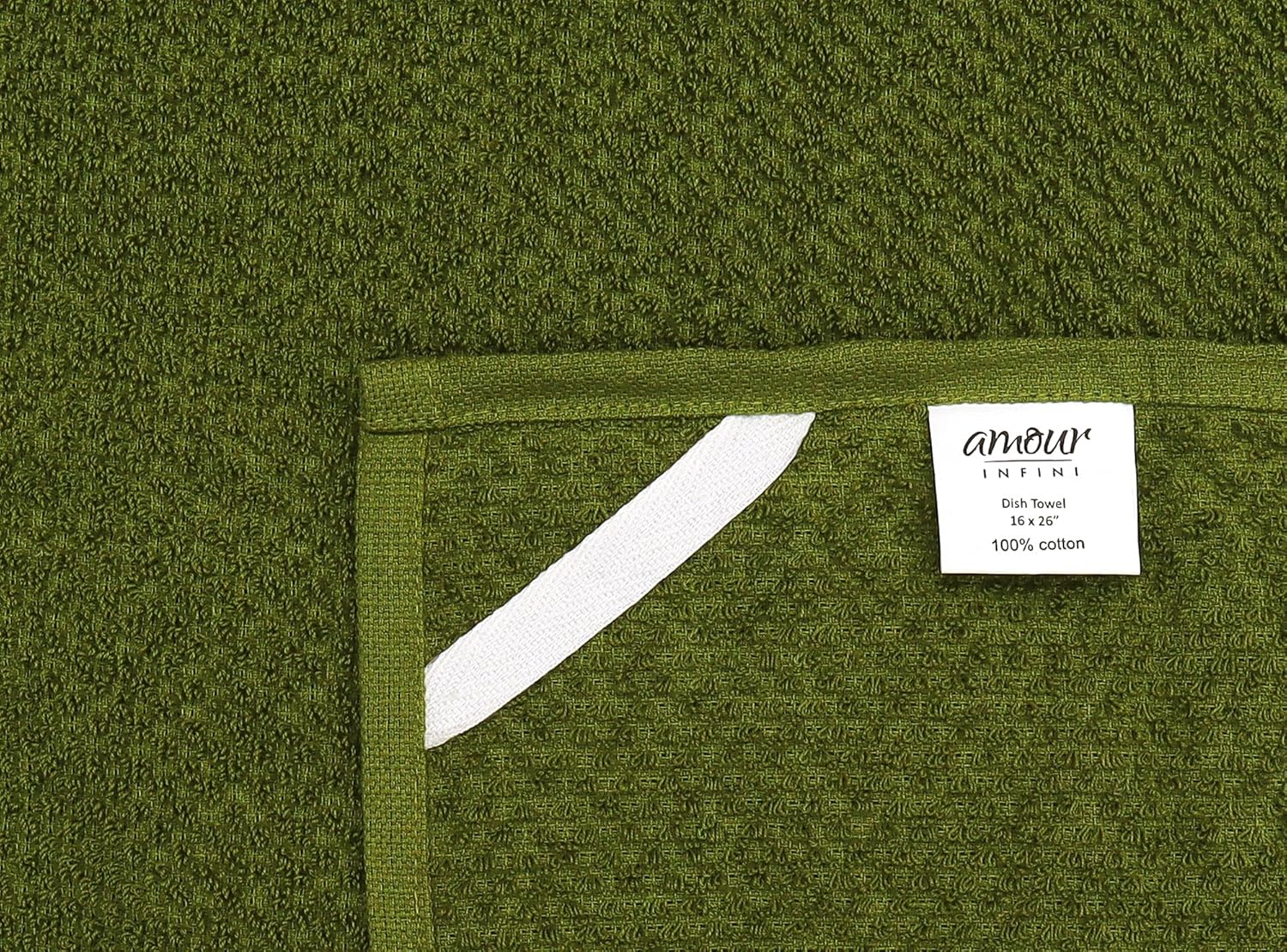 AMOUR INFINI Kitchen Towels Pack of 4 - Absorbent, Quick Drying Premium Cotton Tea Towel - Kitchen Linens 16x28 Inch Dish Towels with Hanging Loop (Green)