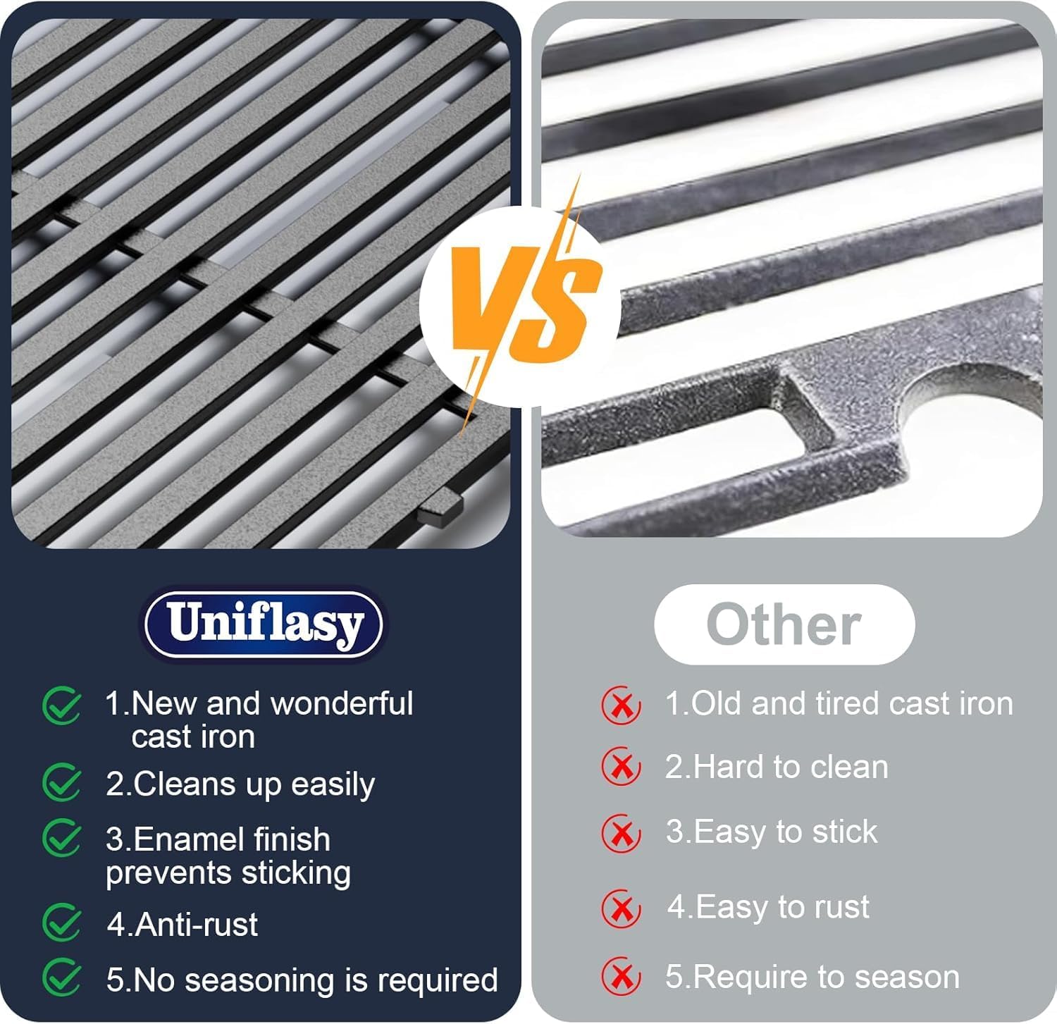 - 【Heavy-Duty Cast Iron – Built to Last】 Made from solid cast iron, these for weber spirit 300 cast iron grill grates outperform enamel-coated versions in heat retention, durability, and searing ability. They won’t chip or rust easily and are perfect for year-round grilling. These grates are a reliable and stylish upgrade to your ( for weber spirit grill grates ) setup.