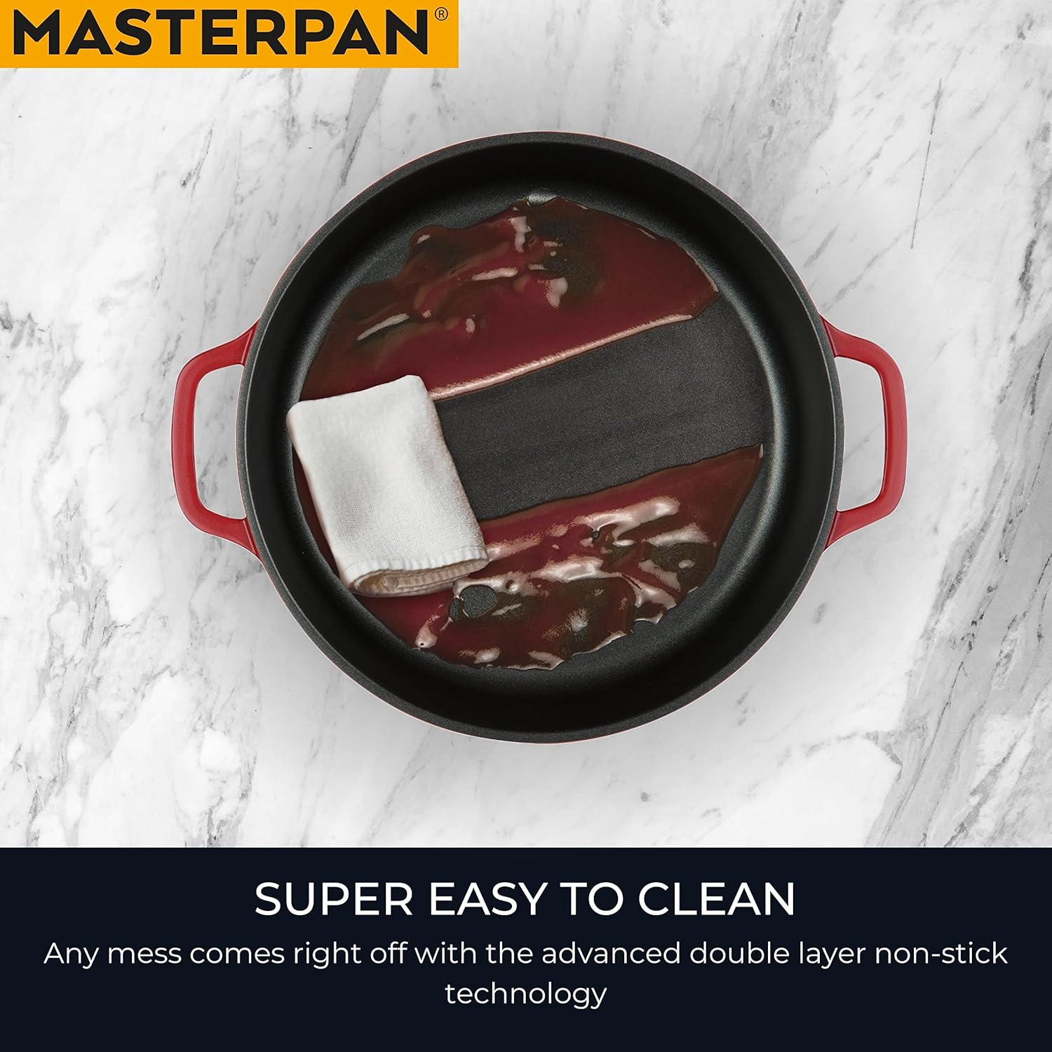 - Non-stick and stain resistant: MasterPan uses Master long double layer non-stick coating which is PFOA free. Food comes right off the pan so it makes cooking more enjoyable and easy