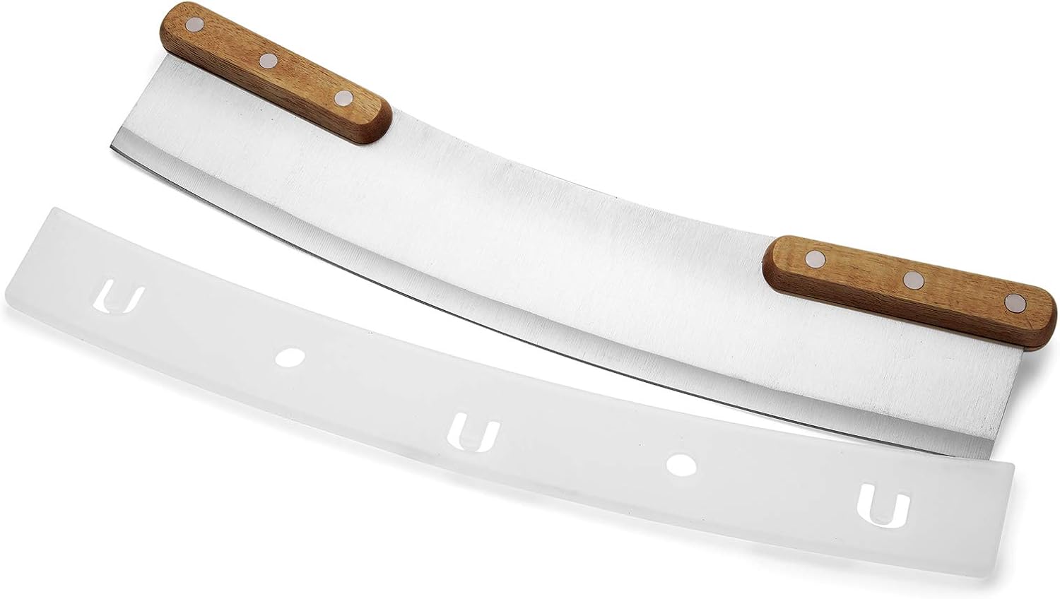- DURABLE DESIGN: This pizza rocker comes with a beautiful acacia wood handle with a blade made in the artisan craftsmen style of knife makers of years ago. Plus, it comes with a bonus clear polycarbonate edge protector as well.