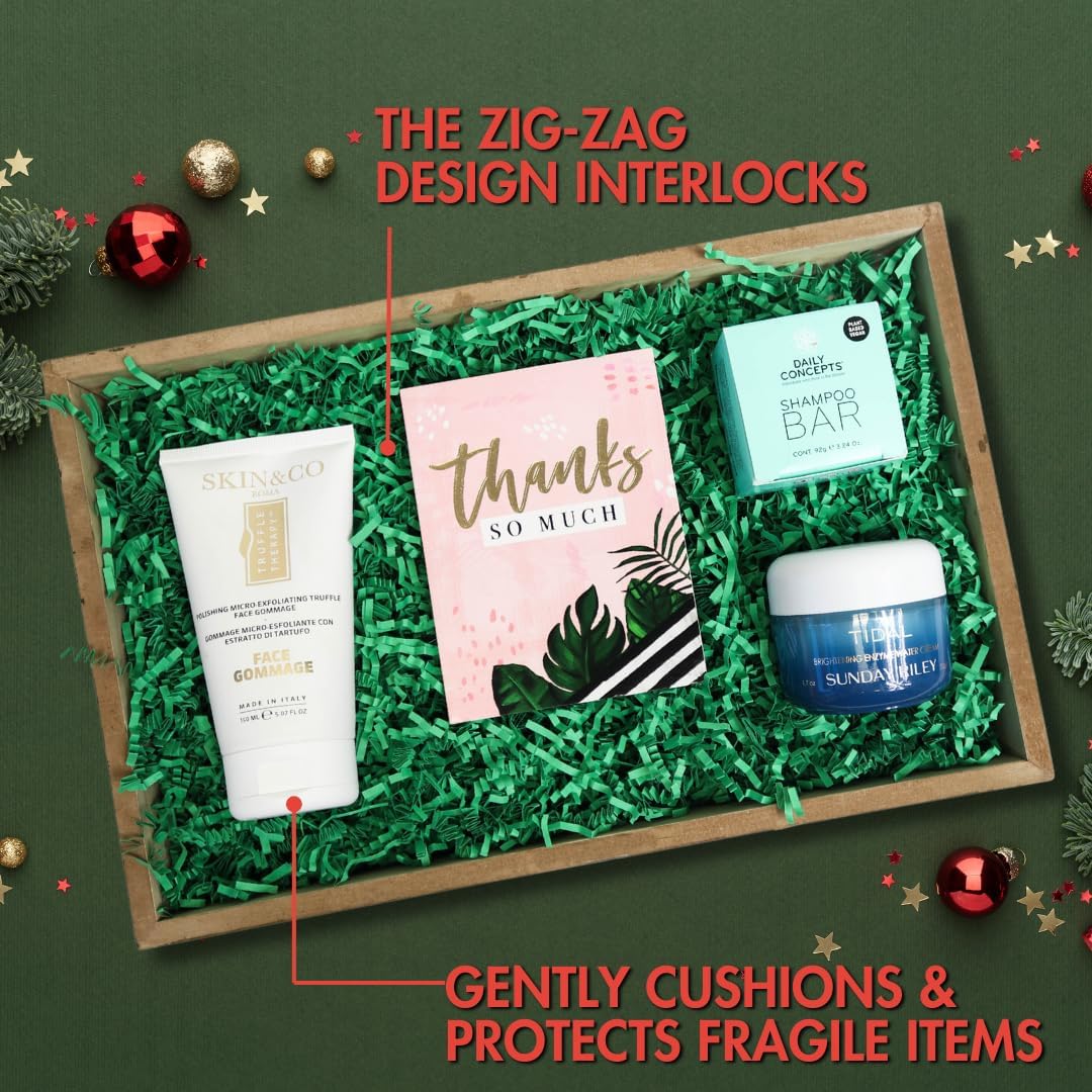 - VERSATILE GIFT WRAPPING & PACKAGING: Our 2 LB Green crinkle paper filler is perfect for creating eye-catching displays in gift bags, gift boxes, and baskets. Fill those extra spaces with premium Green filler paper, ensuring your gifts stand out at any event.