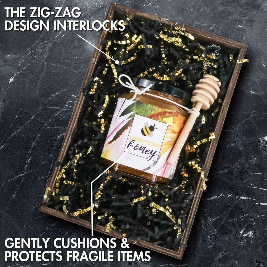 - ECO-FRIENDLY & RECYCLABLE: Proudly made in the USA, our Black & Gold crinkle paper is crafted from recyclable materials, offering an environmentally friendly solution for your packaging needs.