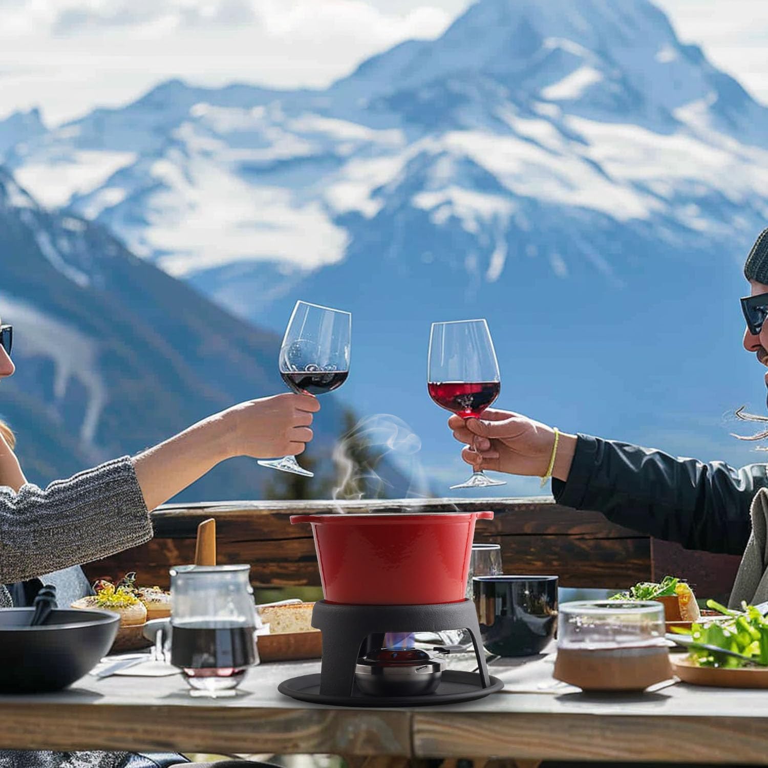- CHEESE FONDUE - Artestia red cast iron fondue set brings back the old, authentic way of making luscious fondue โ but made more conveniently! It features a super sleek and portable design that allows you to create an elegant centerpiece for your table setting - perfect for entertaining, dinner parties, and special occasions