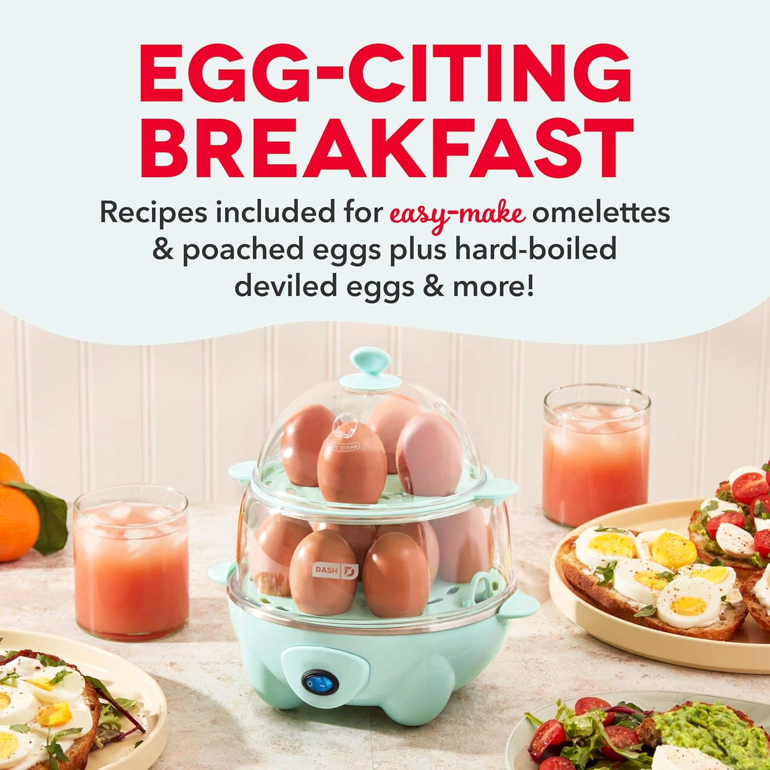 DASH Deluxe Rapid Egg Cooker for Hard Boiled, Poached, Scrambled Eggs, Omelets, Steamed Vegetables, Dumplings & More, 12 capacity, with Auto Shut Off Feature - Aqua
