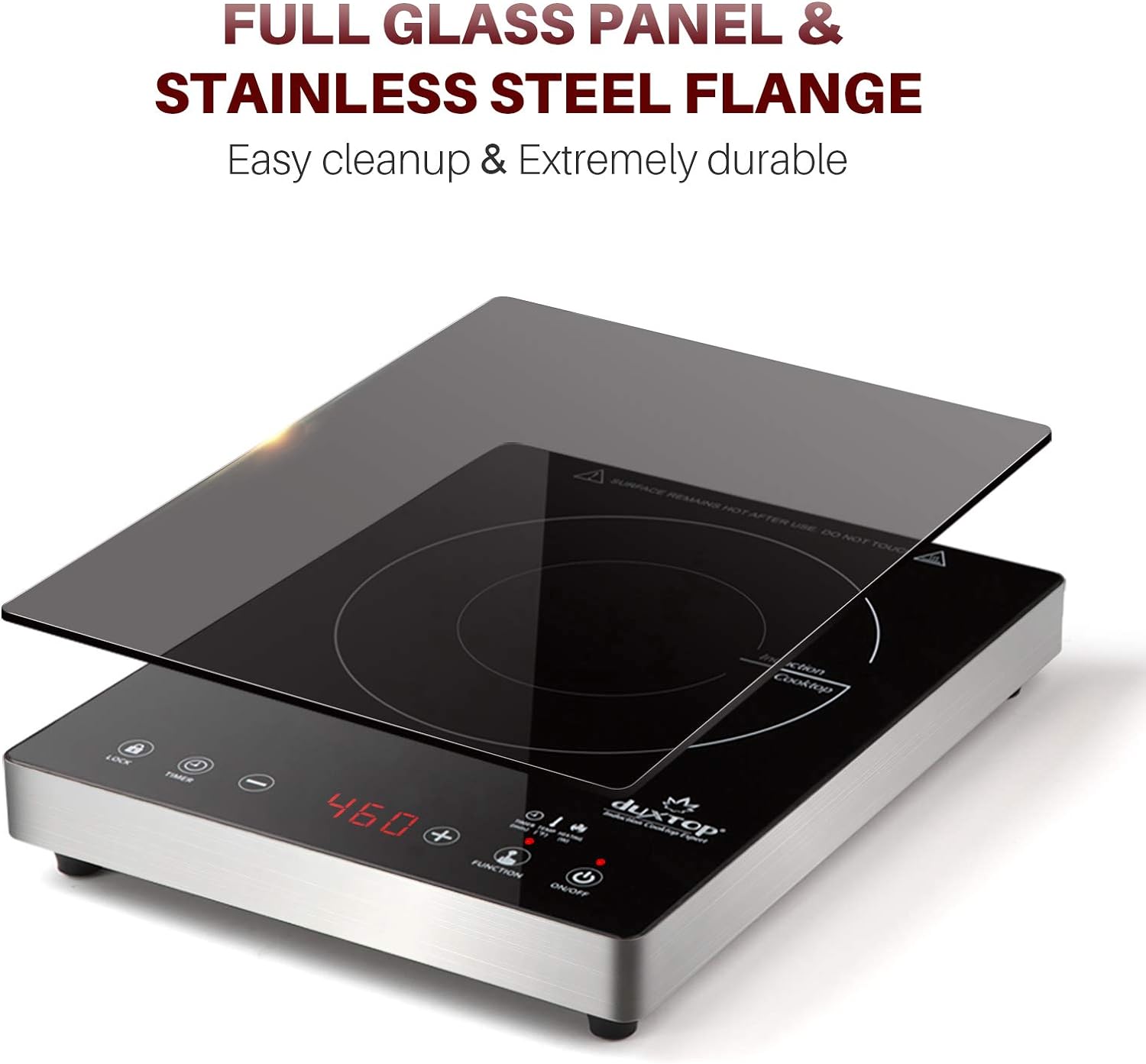 Duxtop Portable Induction Cooktop, High End Full Glass Induction Burner with Sensor Touch, 1800W Countertop Burner with Stainless Steel Housing, E200A, Black