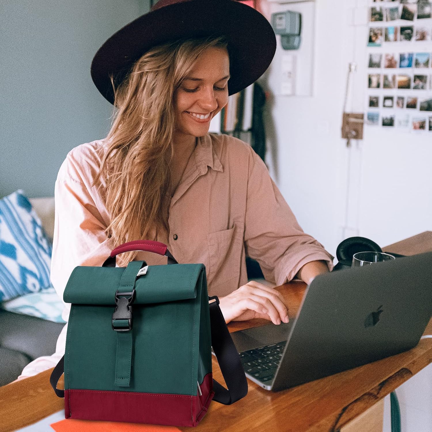 SUNNY BIRD Insulated Lunch Bag Rolltop Lunch Box Tote Lunchbox Bag for Women, Men, Adults and Teens (Green)