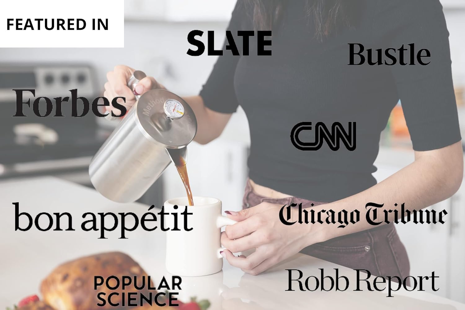 - BUILT-IN THERMOMETER: It provides a perfect temperature. Water that is too hot will burn your coffee. If it is too cold, you won’t extract the full consistency of the beans. Our french press comes with an auto temperature gauge which allows you to brew your pour over coffee at the optimal temperature (195-205°F). Make a perfect cup of coffee every time with our easy to read coffee thermometer!