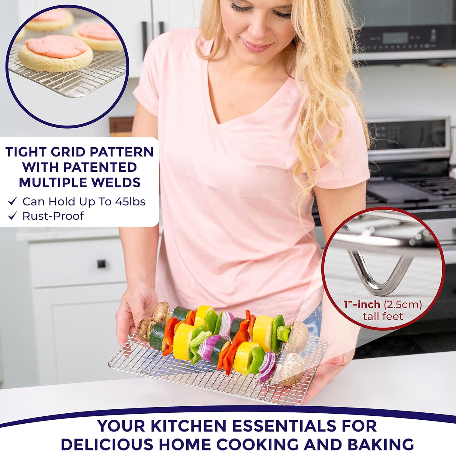 - Set Of 2 8.5β X 12" Inch Quarter Sheet Pan Rack for Cooling & Oven Cooking: Commercial grade 304 stainless baking steel wire rack for baking, roasting, grilling, broiling, smoking etc. Our wire cooling rack has no artificial chrome coating and no rusting.