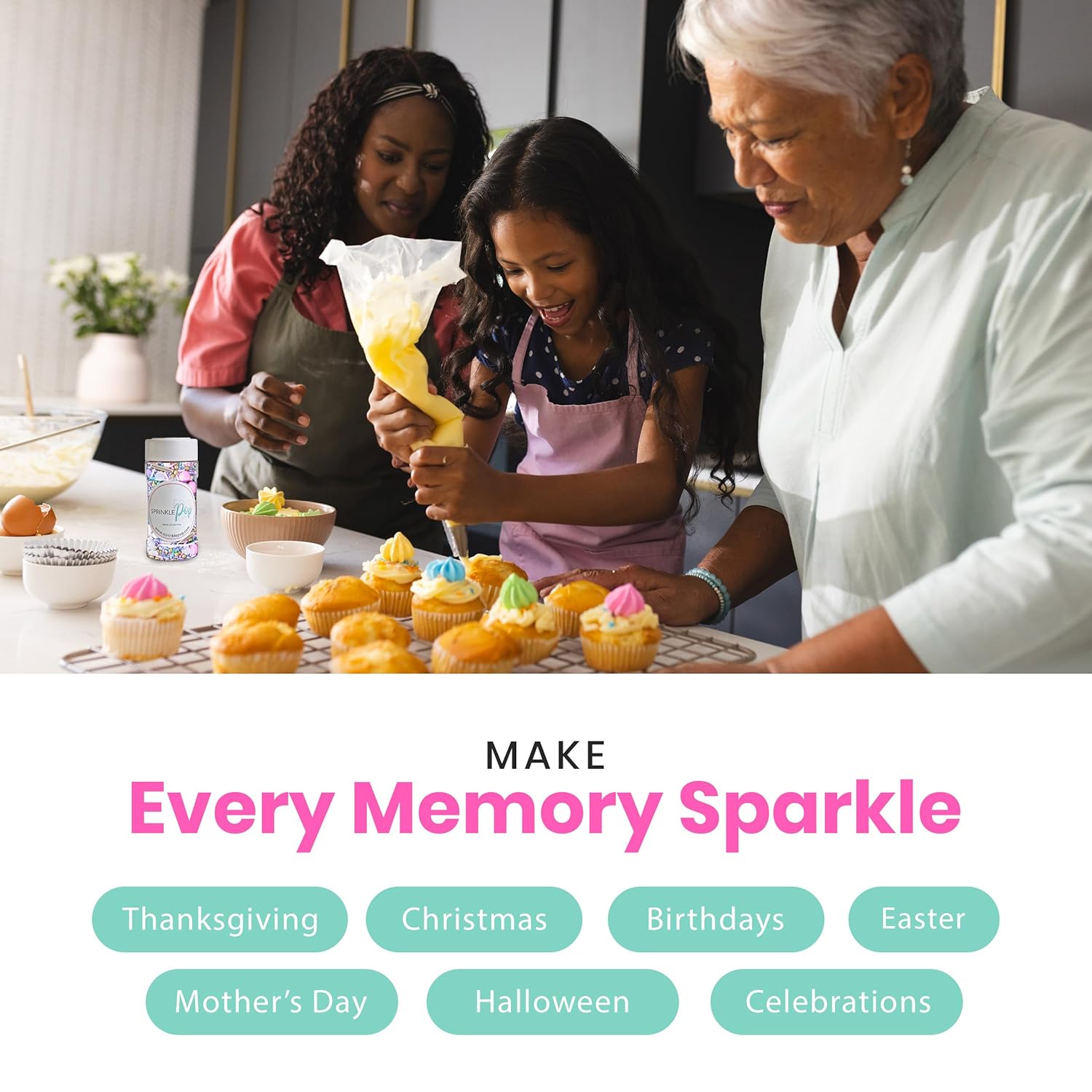 - Add a touch of magic to your creations with our Unicorn Sprinkles featuring enchanting pastel colors in pink, purple, blue, white, and shimmering gold metallics, this sprinkle blend is perfect for princess birthdays, bridal showers, and baby showers. Elevate your cakes, cookies, and cupcakes with this whimsical sprinkle mix