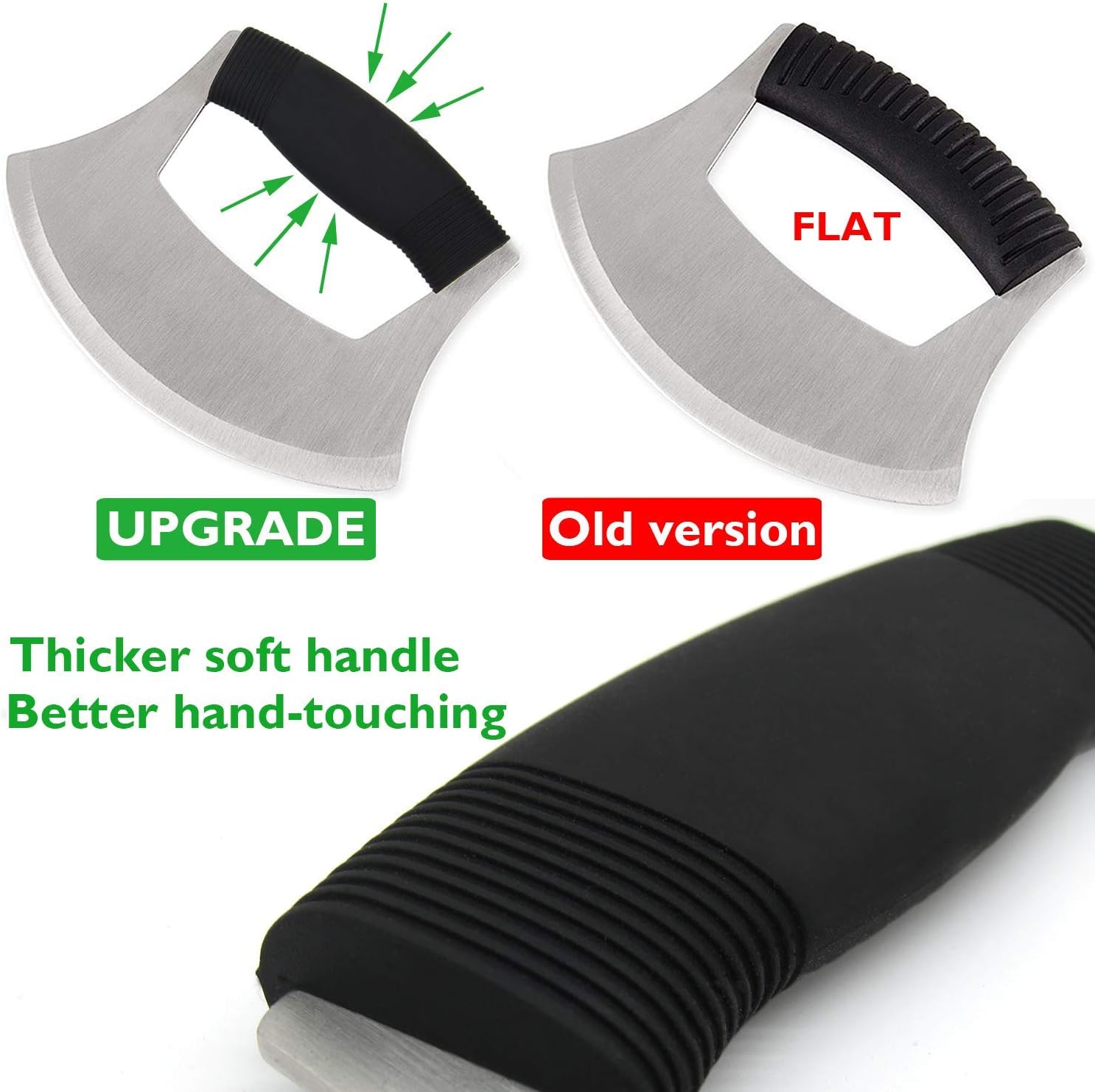 Pizza Cutter Stainless Steel Ulu knife Razor Sharp Rocker Slicer Cutter Mincing Mezzaluna Knife Salad Vegetable Chopper with Upgraded Ergonomic Anti-Slip Handle