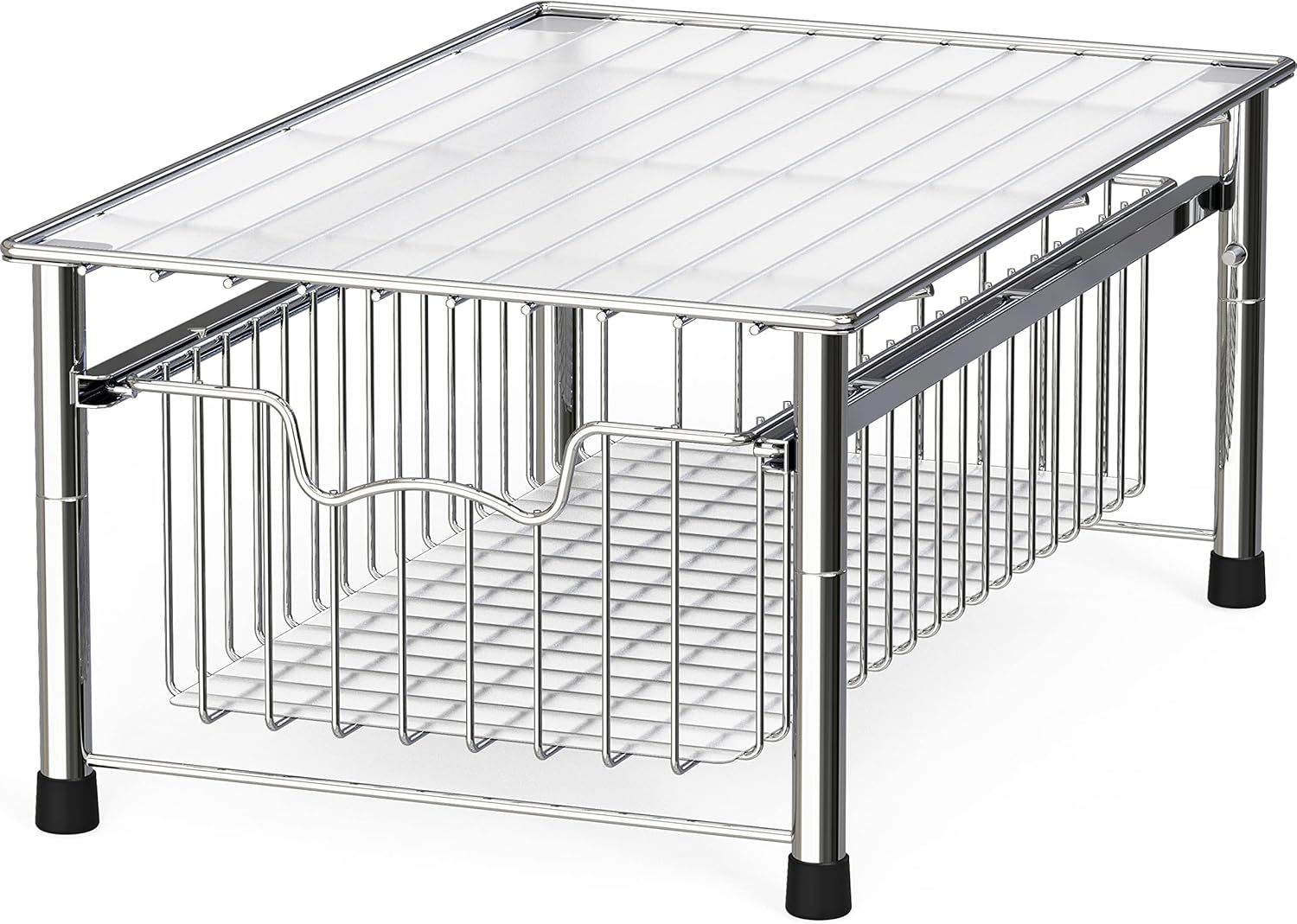 - Sliding basket for easy access in limit space and stackable design (Buy two sets and stack them together)