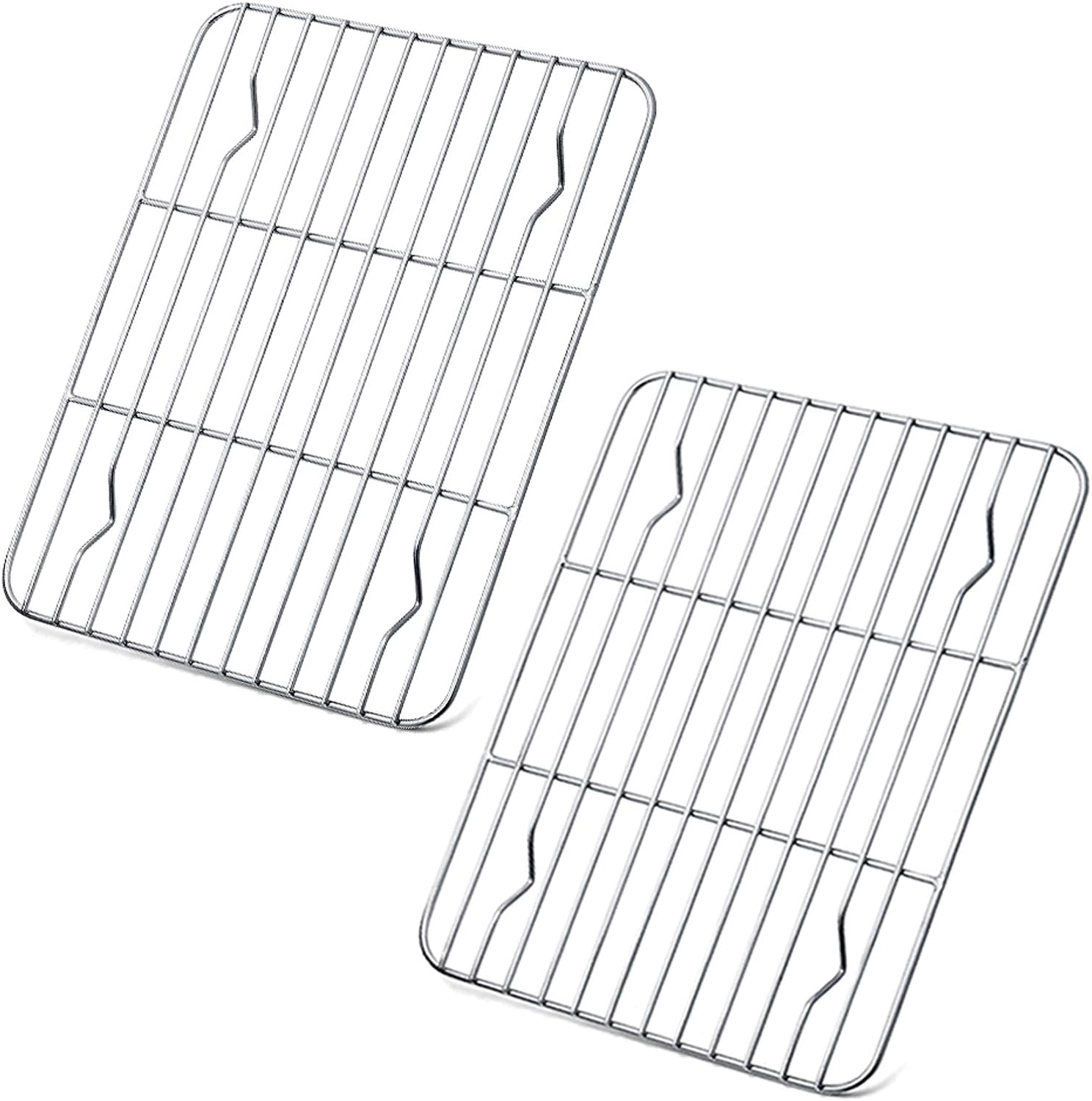 P&P CHEF Cooling Baking Rack Pack of 2, Stainless Steel Cooling Racks for Cooking Baking Roasting Grilling Drying, Dense Wires & Smooth Edge, Easy to clean, Silver, 9.7" x 7.3"